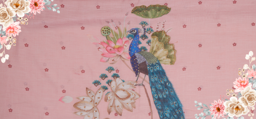 Javer Banarasi Silk Bird Print Pita Hand Work Dress Material for Women