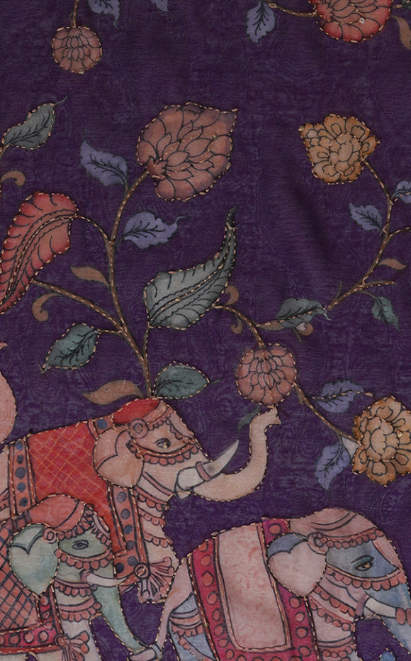 Chanderi Silk Kalamkari Print Kantha Work Unstitched Dress Material