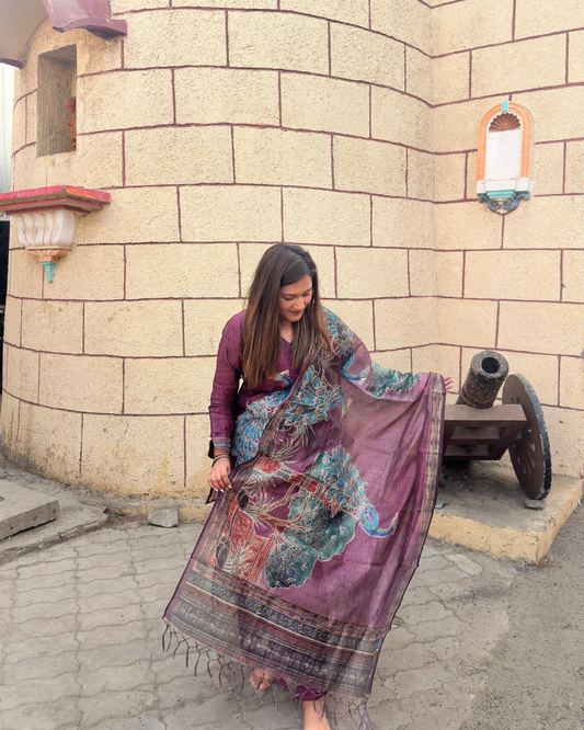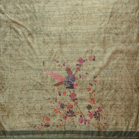 Javer Banarasi Silk Bird Print Pita Hand Work Dress Material for Women