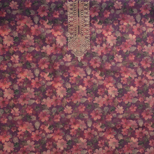 Javer Linen Badla Work Floral Print Unstitched Suit Set for Women