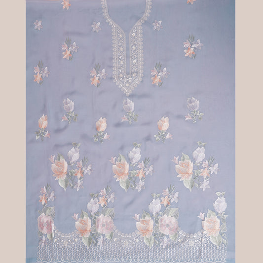 Javer Unstitched Dress Material for Women - Floral Print Organza Thread Work