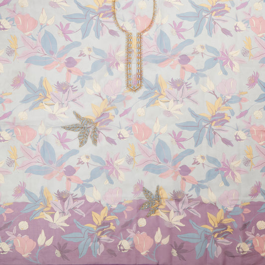 Chanderi Silk Floral Print Zardosi Work Unstitched Suit Set