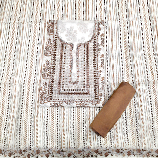 Javer Chanderi Silk Floral French Knots Dress Material for Women