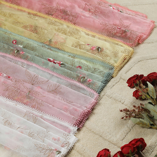 Chanderi Silk Floral Print Zardosi Work Unstitched Suit Set
