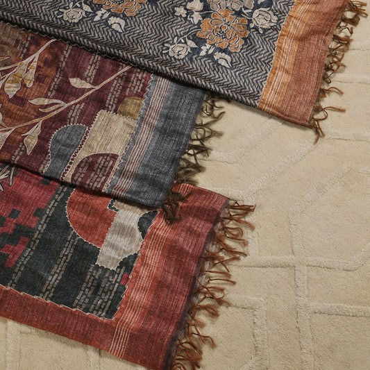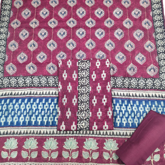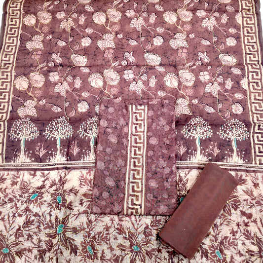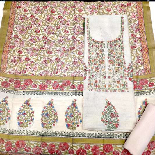 Chanderi Silk Kalamkari Print Kantha Work Unstitched Dress Material