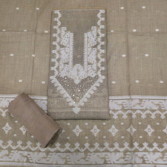 Javer Chanderi Silk Jamdani Woven Unstitched Suit Set for Women