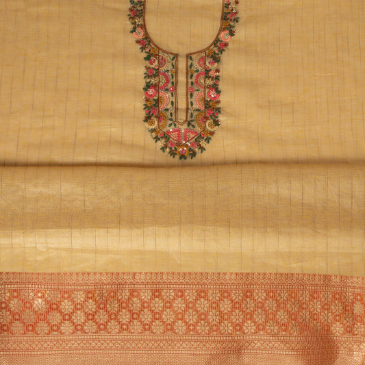 Javer Tissue Silk Kantha & French knots hand embroidered Dress Material