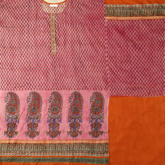 Javer Unstitched Suit Set for Women - Tussar Silk Block Print Sequence Work