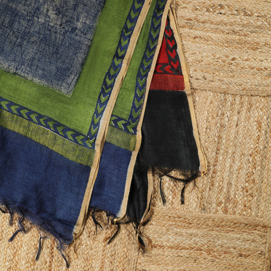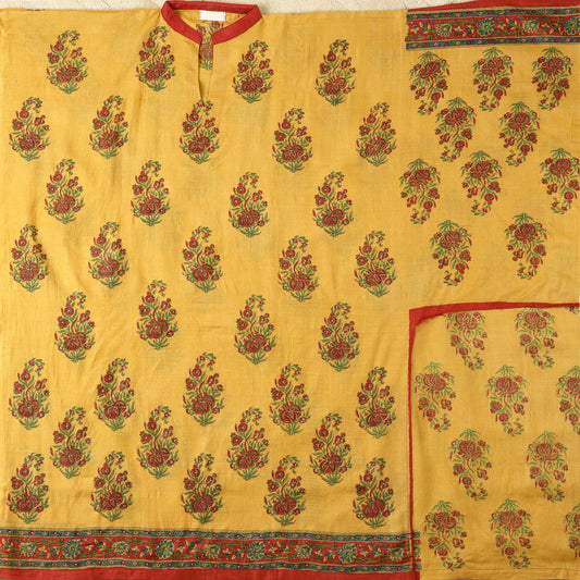 Javer Unstitched Suit Set for Women - Vibrant Tussar Silk Block Print Sequence