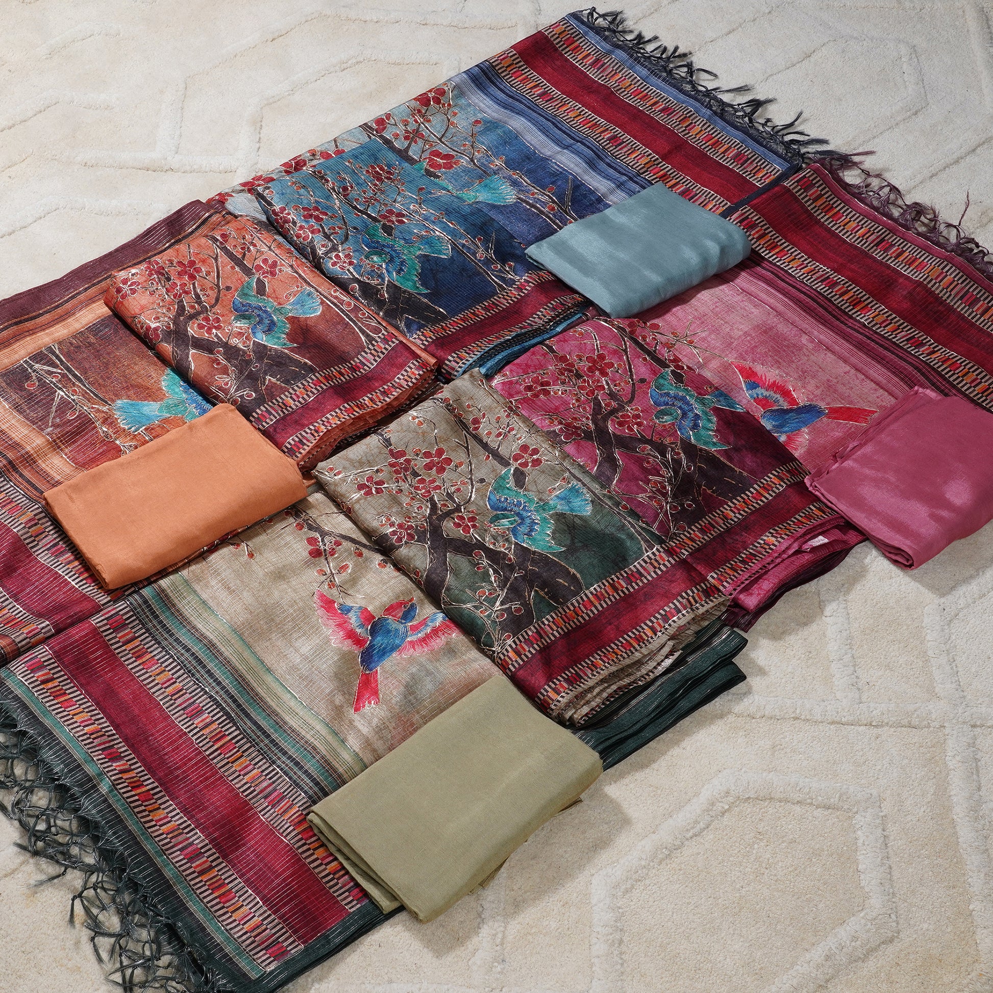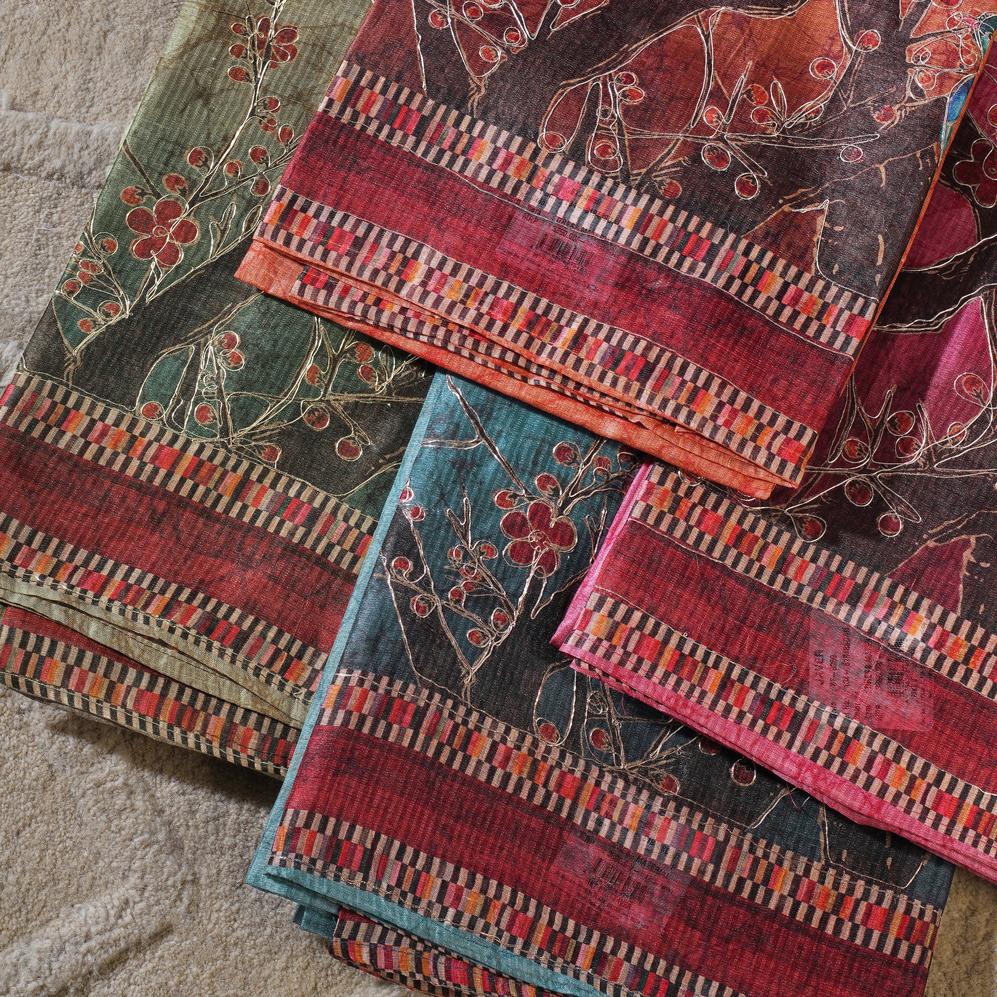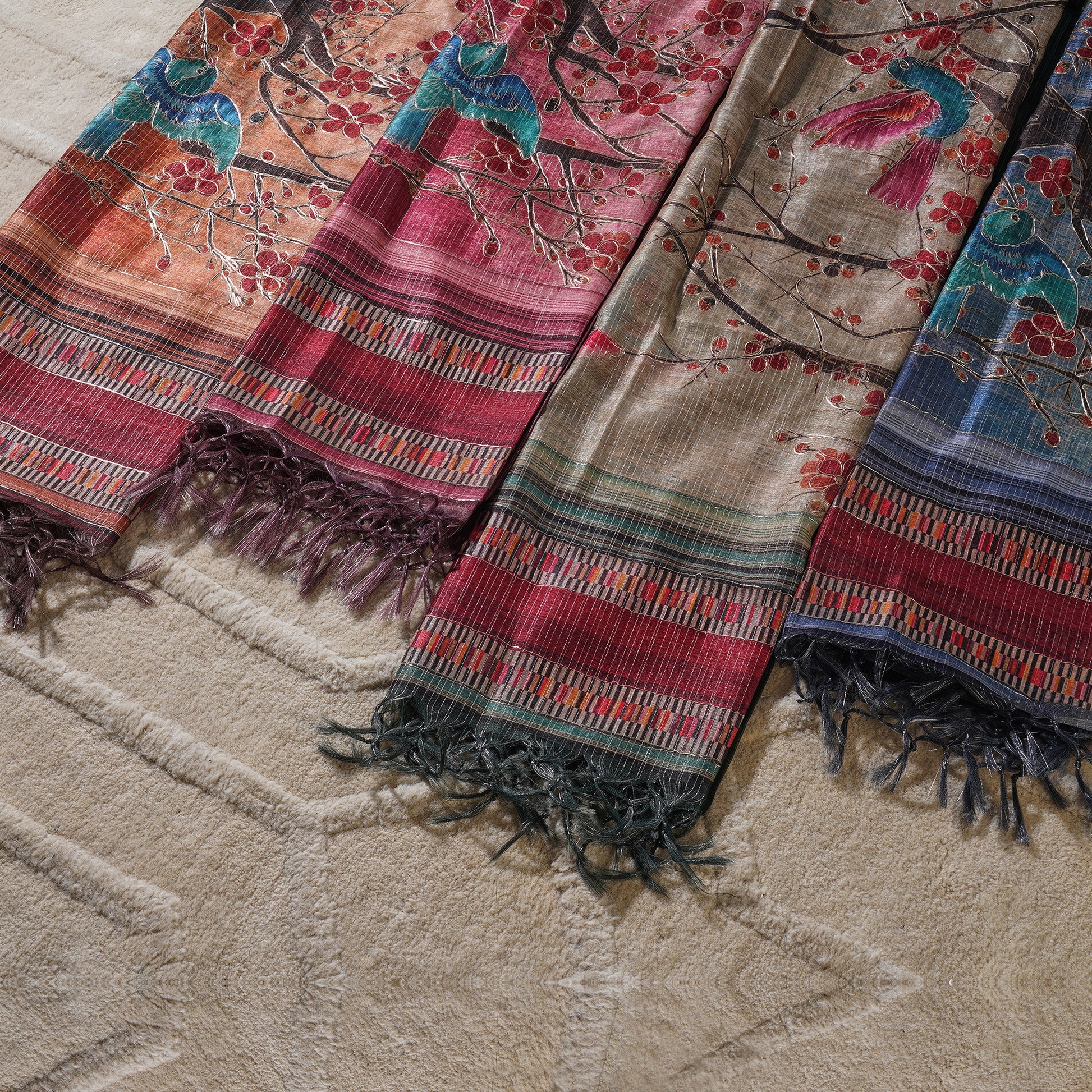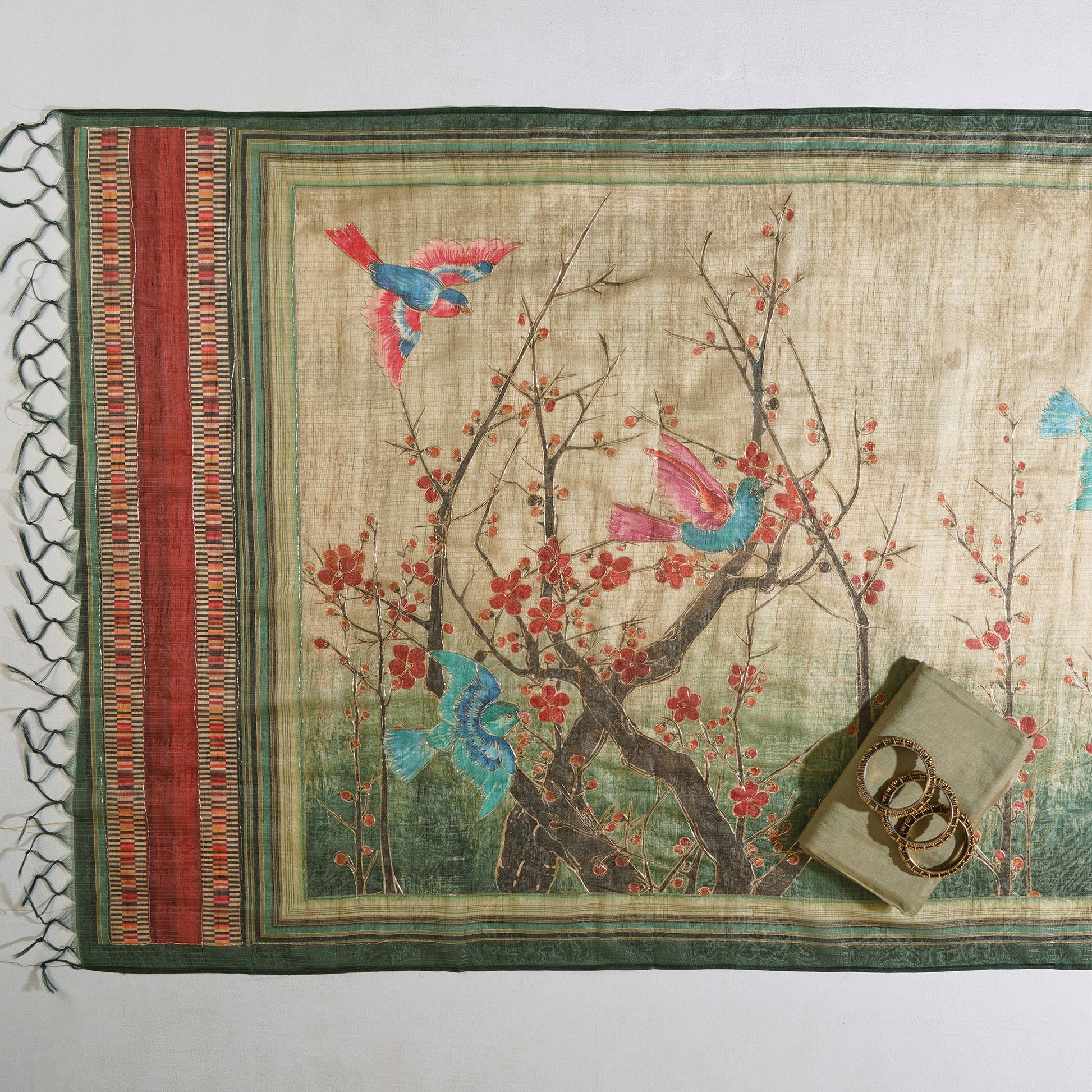 The fabric quality is outstanding. The silk is smooth, and the intricate handwork complements the vibrant bird print.