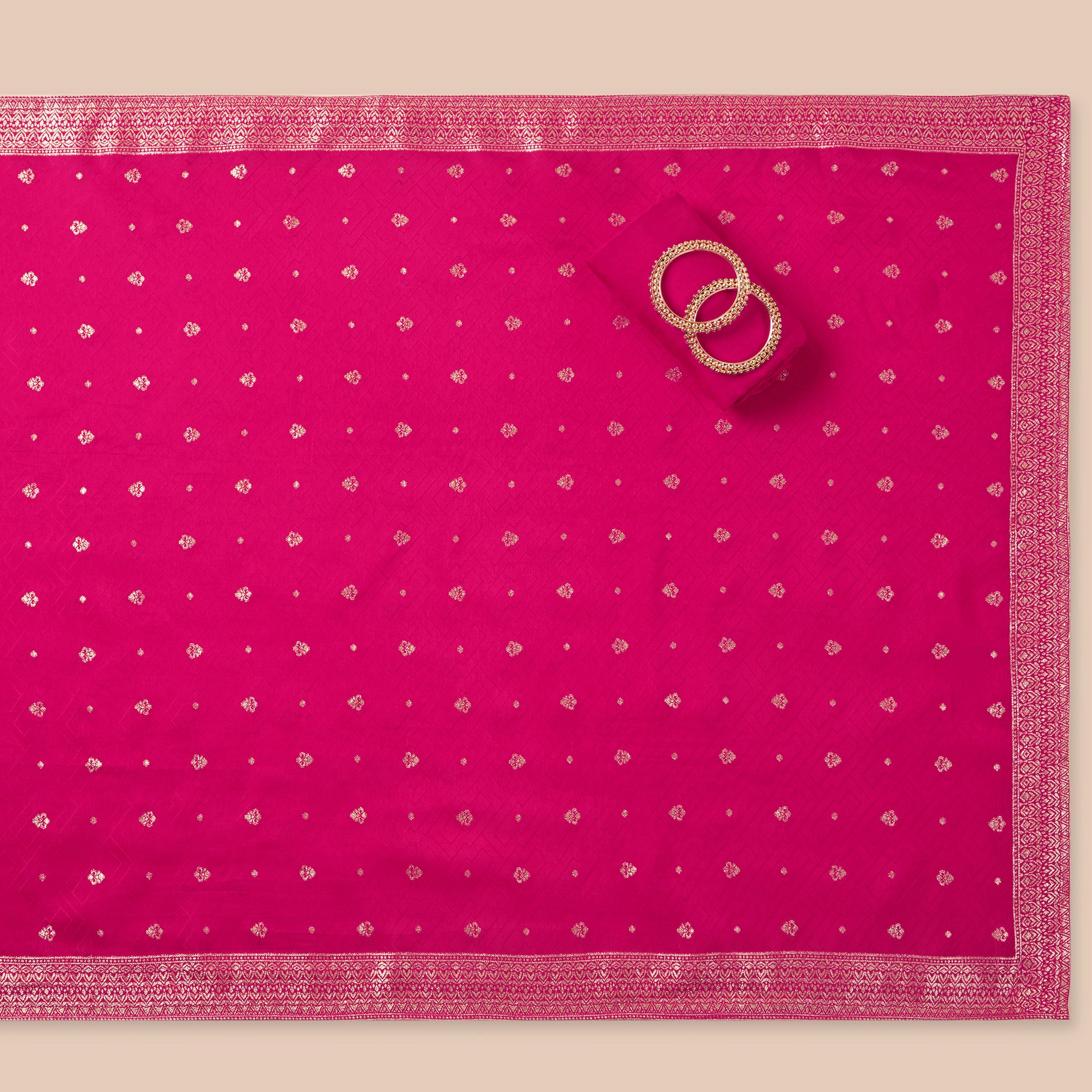 Immerse yourself in the opulence of Javer Banarasi Silk Golden Foil Buttis Suit Set. This stunning 3pcs suit set is the perfect addition to your wardrobe, exuding elegance and grace with its intricate golden foil buttis and luxurious banarasi silk fabric. Unleash your inner queen and make a statement at any occasion with this regal suit set. Feature Bullet Points: - Luxurious Banarasi silk fabric for a rich and royal look - Intricate golden foil buttis for an exquisite and elegant touch - Unstitched design allows for custom fitting and styling - Versatile 3pcs set includes a kurta, bottom, and dupatta for a complete and stylish ensemble - Perfect for weddings, parties, and special occasions, making you stand out in a crowd