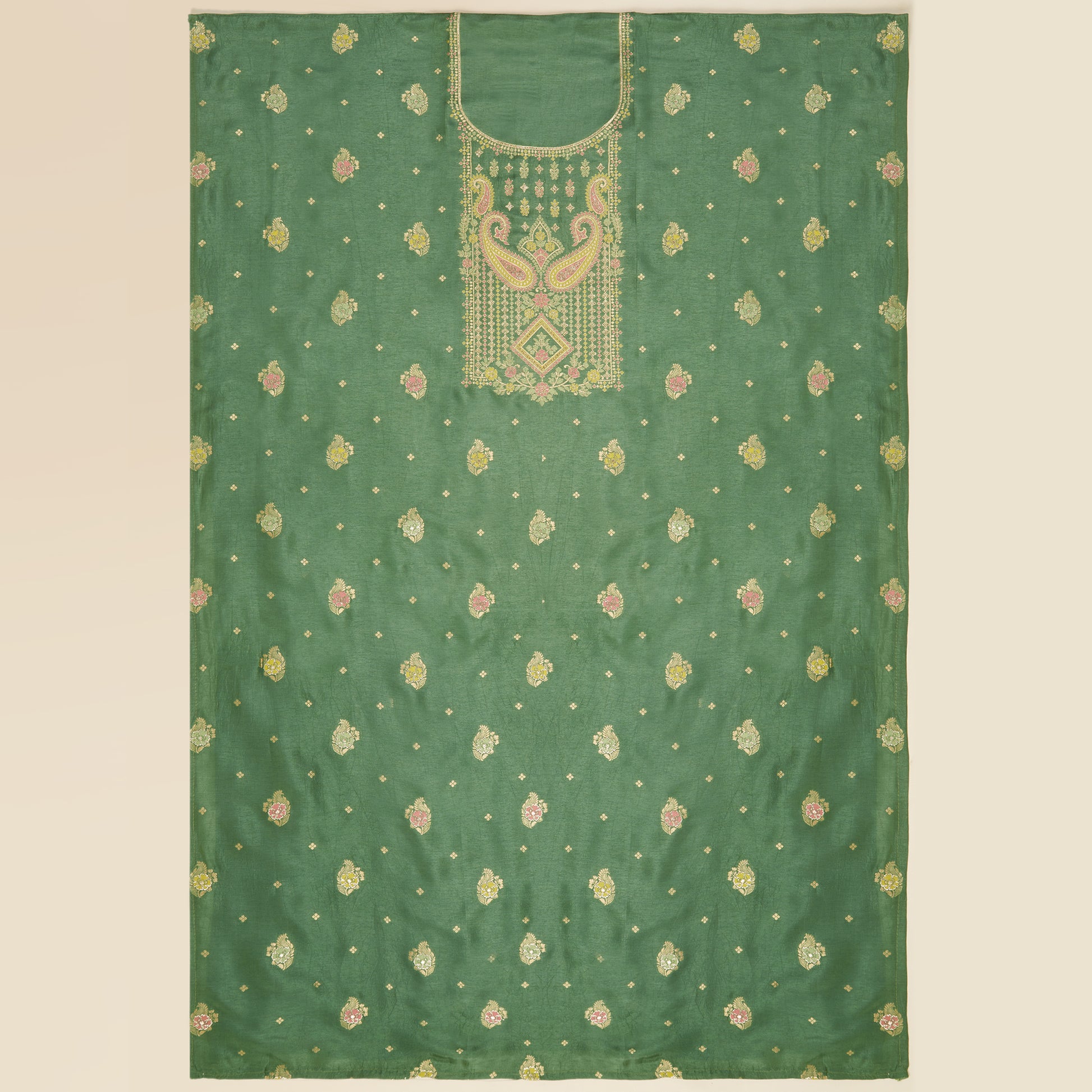 Javer Banarasi Silk Golden Foil Flower Buttis Unstitched 3pcs Suit Set for Women
