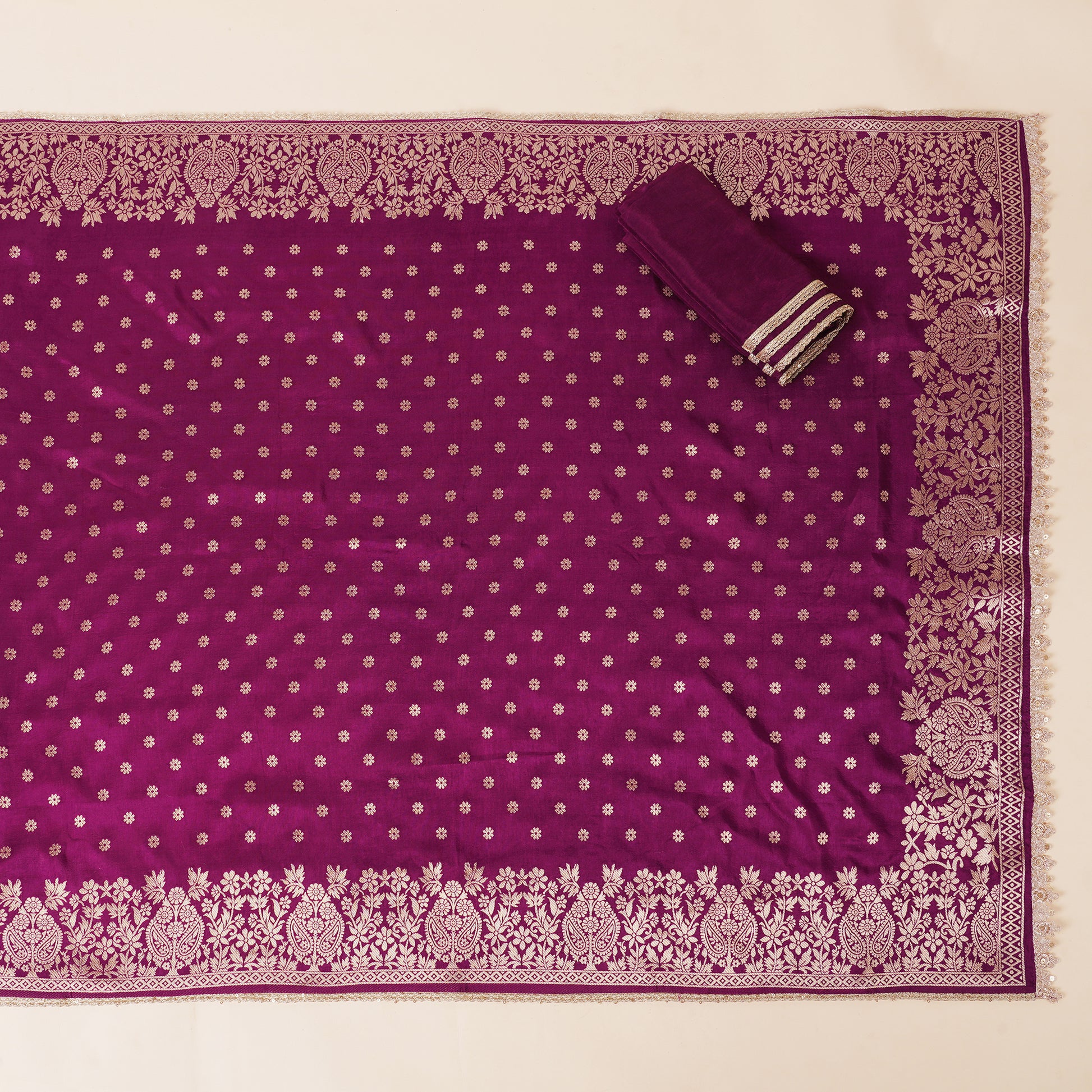 Javer Banarasi Silk Zardosi Work Unstitched Suit Set for Women