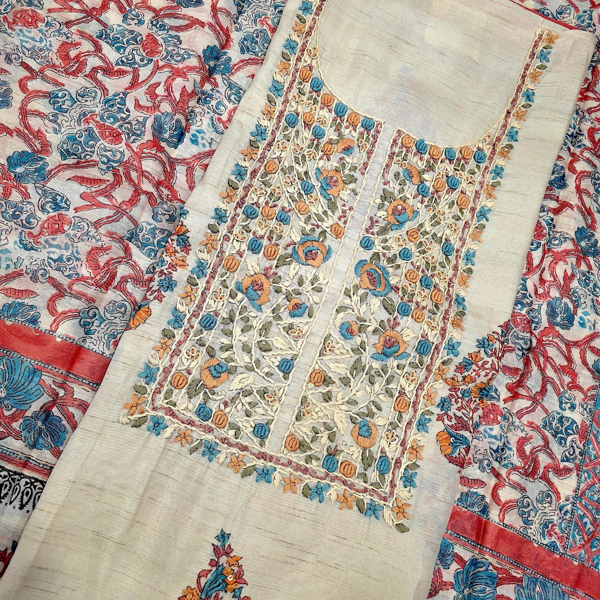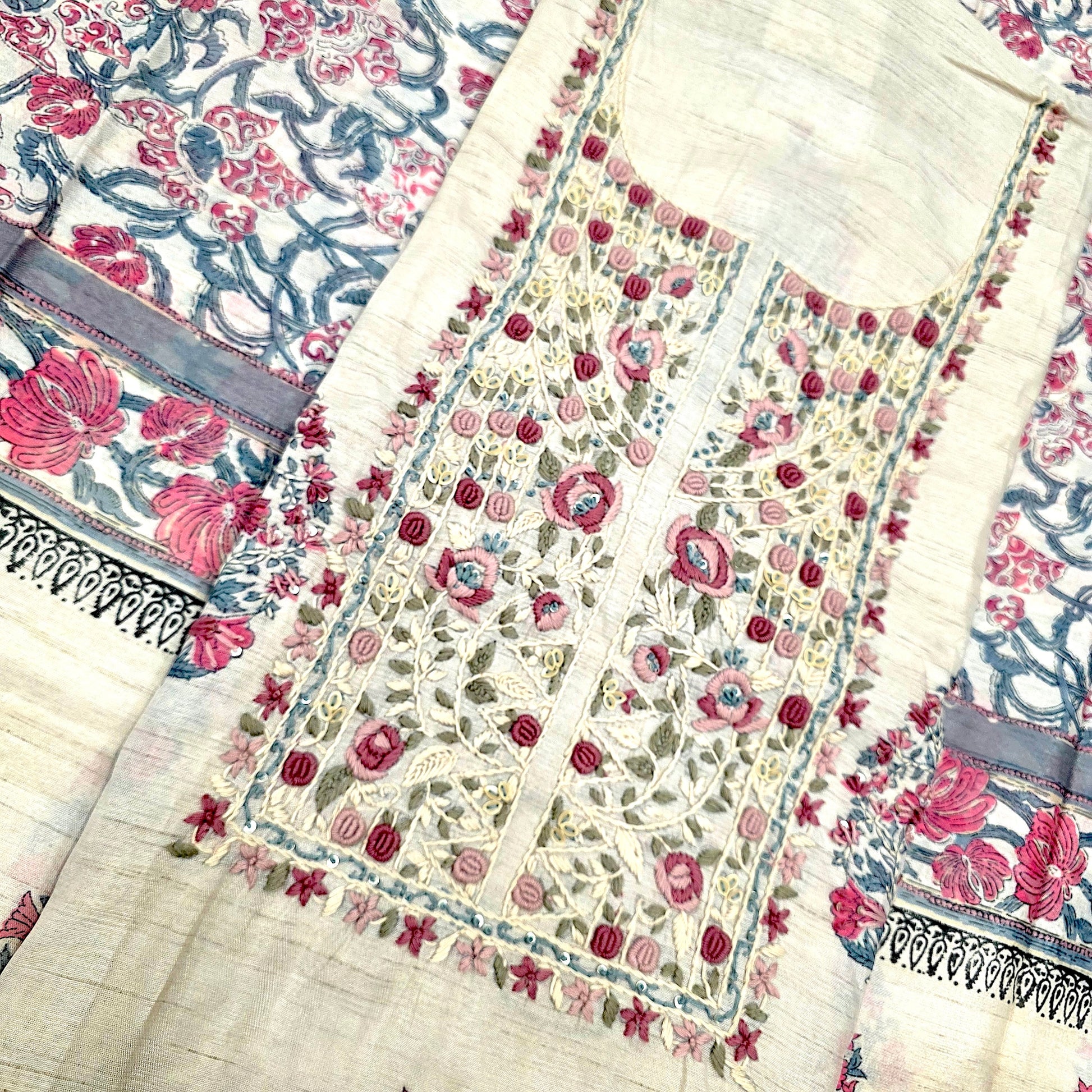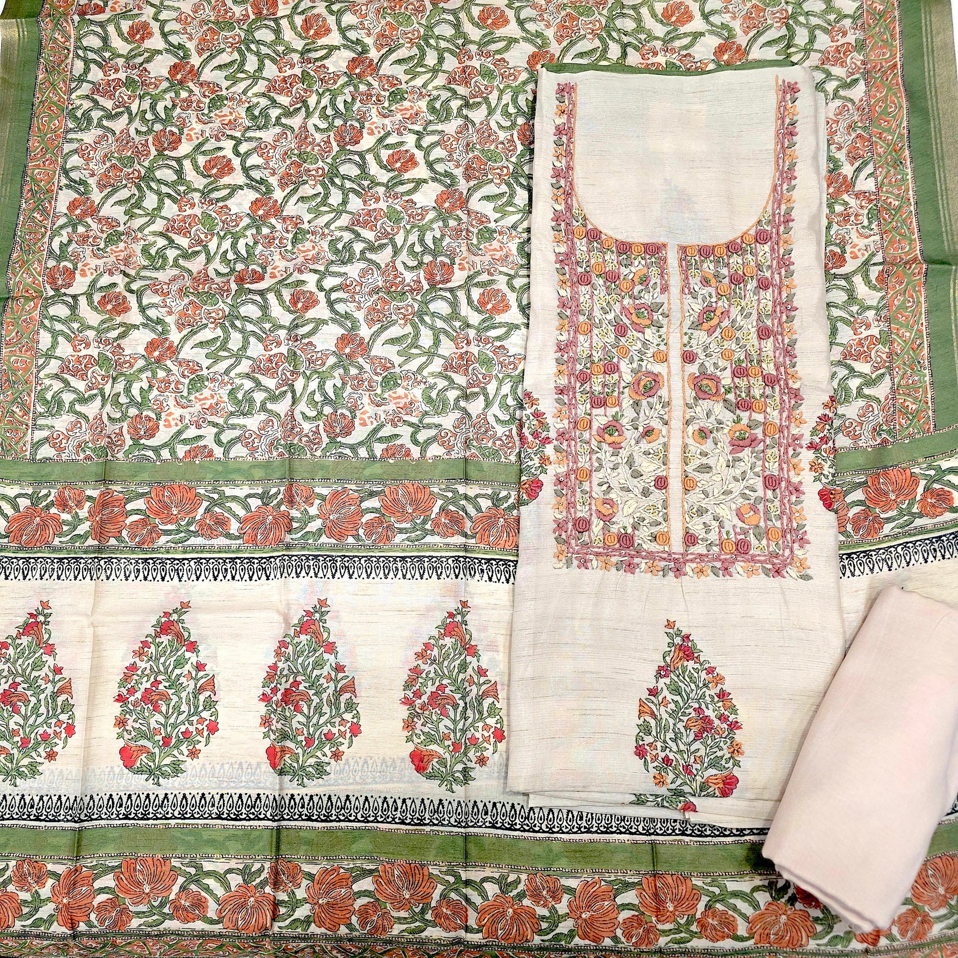 Javer Chanderi Silk Floral French Knots Dress Material for Women