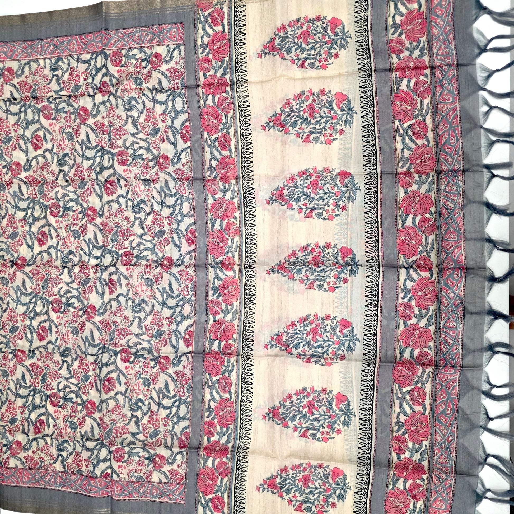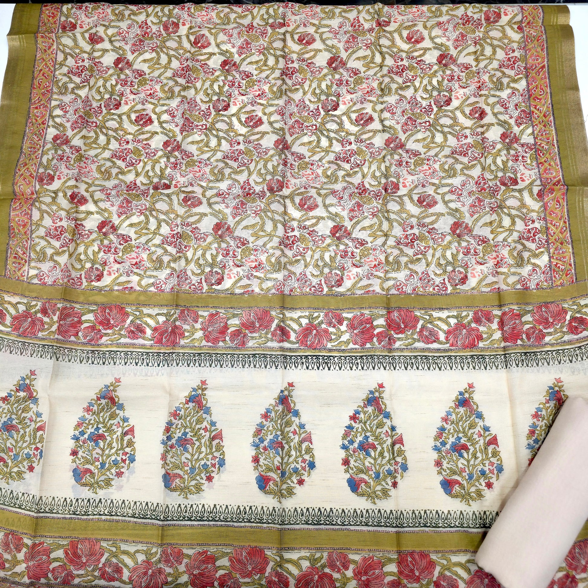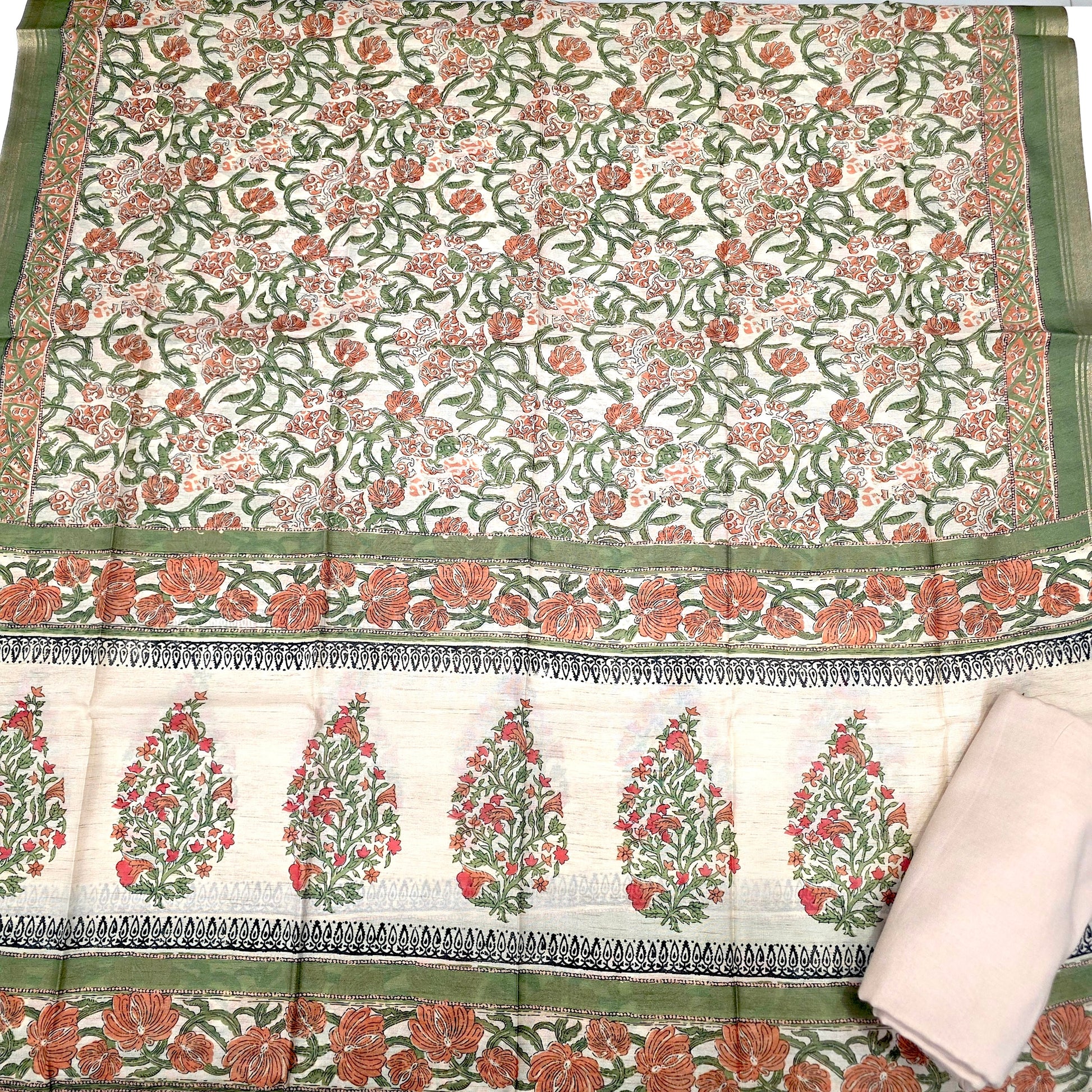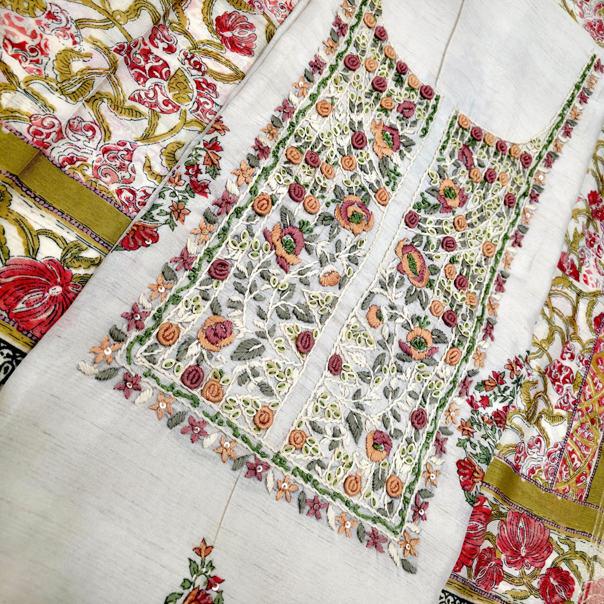 Javer Chanderi Silk Floral French Knots Dress Material for Women