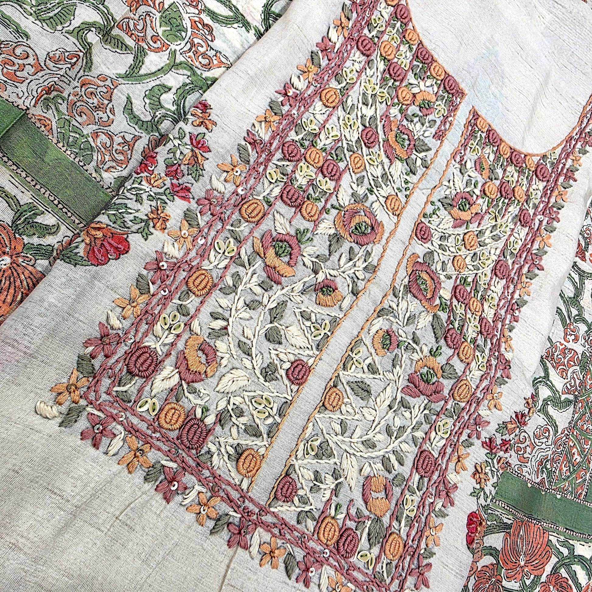 Feel the luxurious touch of chanderi silk with our Javer dress material, adorned with delicate floral french knots, perfect for any occasion. Feature Bullet Points: - Premium Quality: Made with high quality chanderi silk fabric for a soft and comfortable feel. - Exquisite Embroidery: Intricately handcrafted with delicate floral french knots for a touch of elegance. - Versatile Style: Can be stitched into a salwar suit, kurti or even a trendy Indo-western outfit, making it a versatile addition to your wardrobe. - Vibrant Colors: Choose from a range of vibrant colors to suit your personal style and preference. - Perfect Fit: Comes with ample fabric and measurements to ensure a perfect fit for all body types.