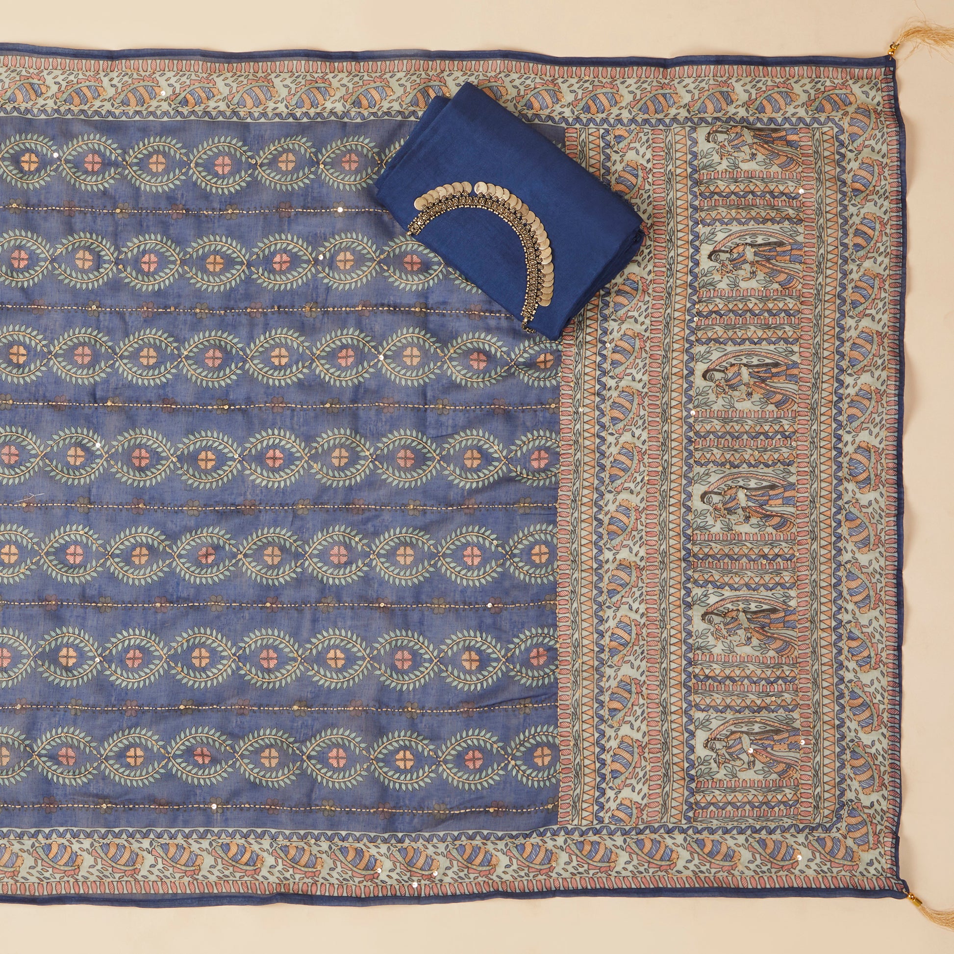 The floral Kantha work on this Chanderi silk suit set is simply gorgeous. The fabric is soft, and the design is traditional yet modern. A perfect choice for any occasion.