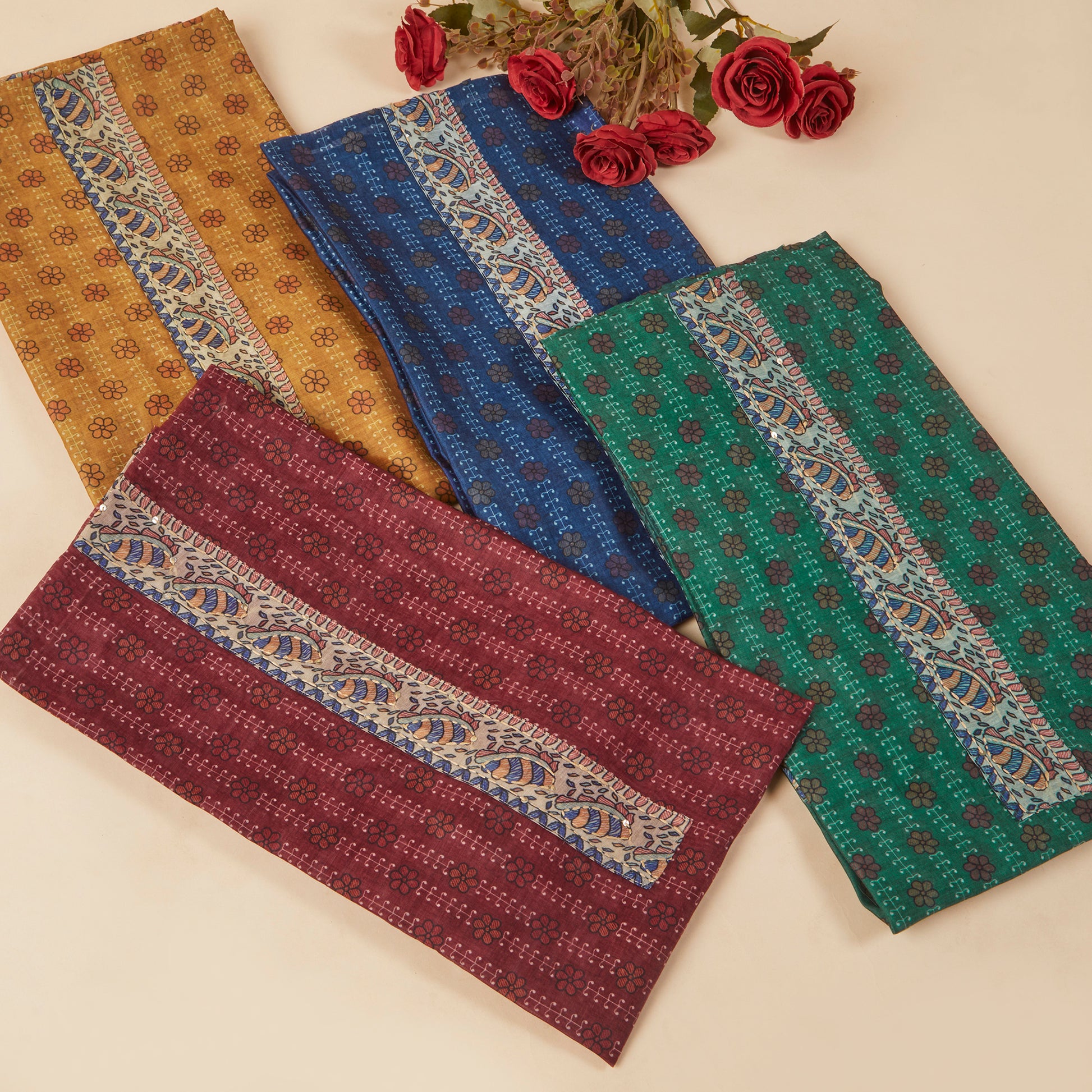 Javer Chanderi Silk Floral Kantha Work Unstitched Suit Set for Women