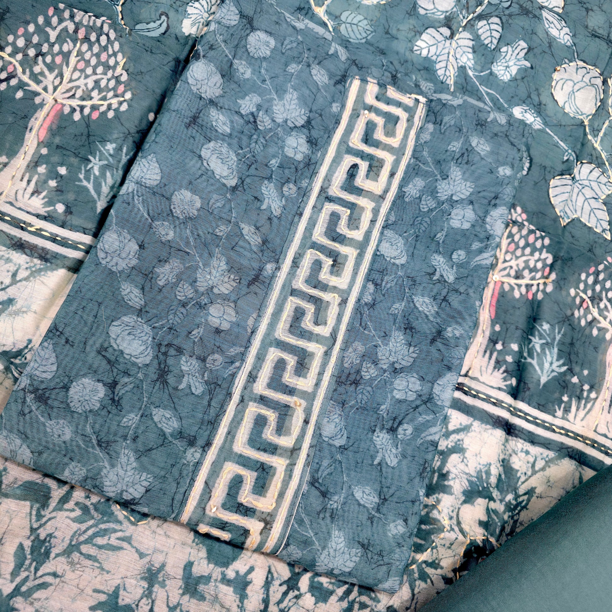 Javer Chanderi Silk Kantha Work Dress Material for Women