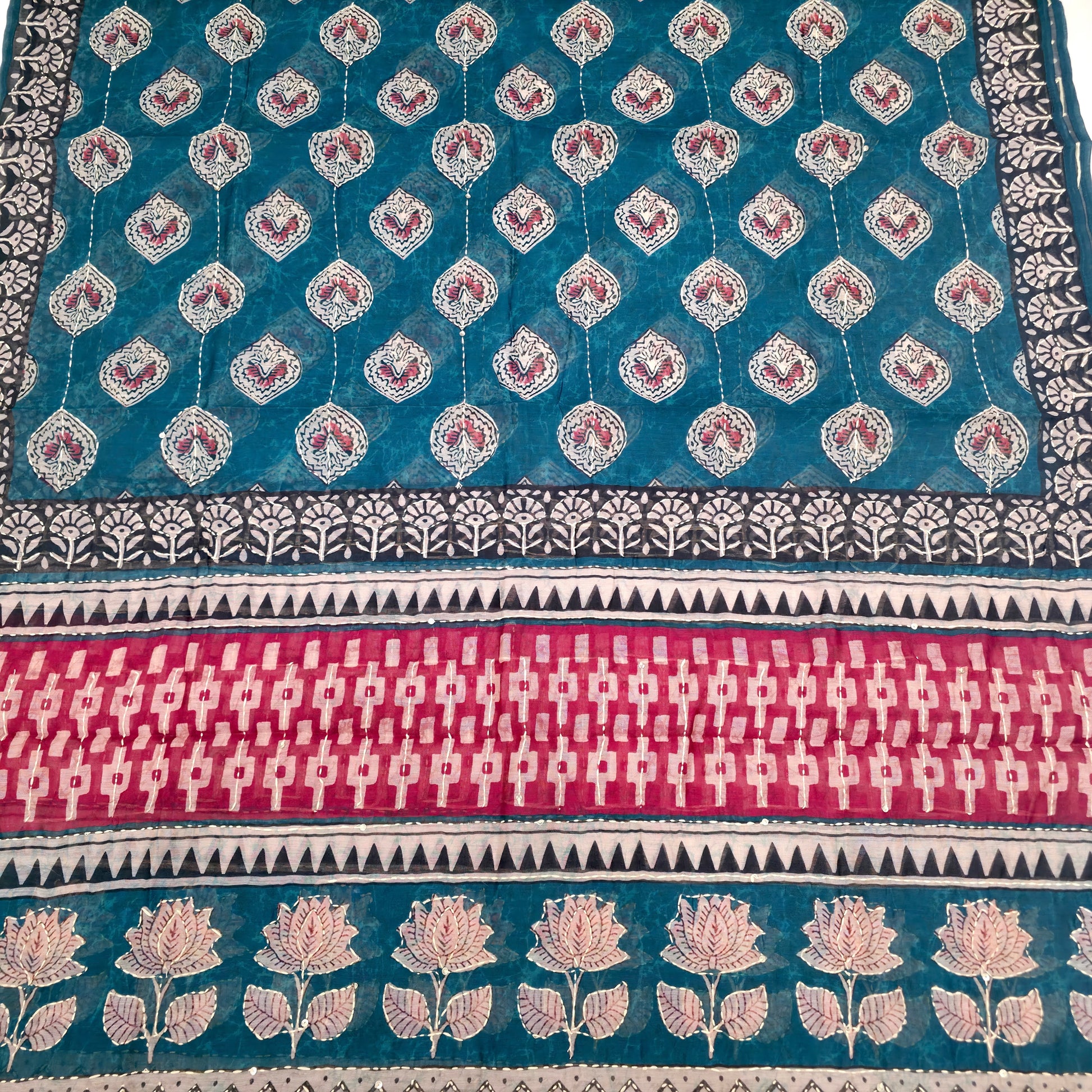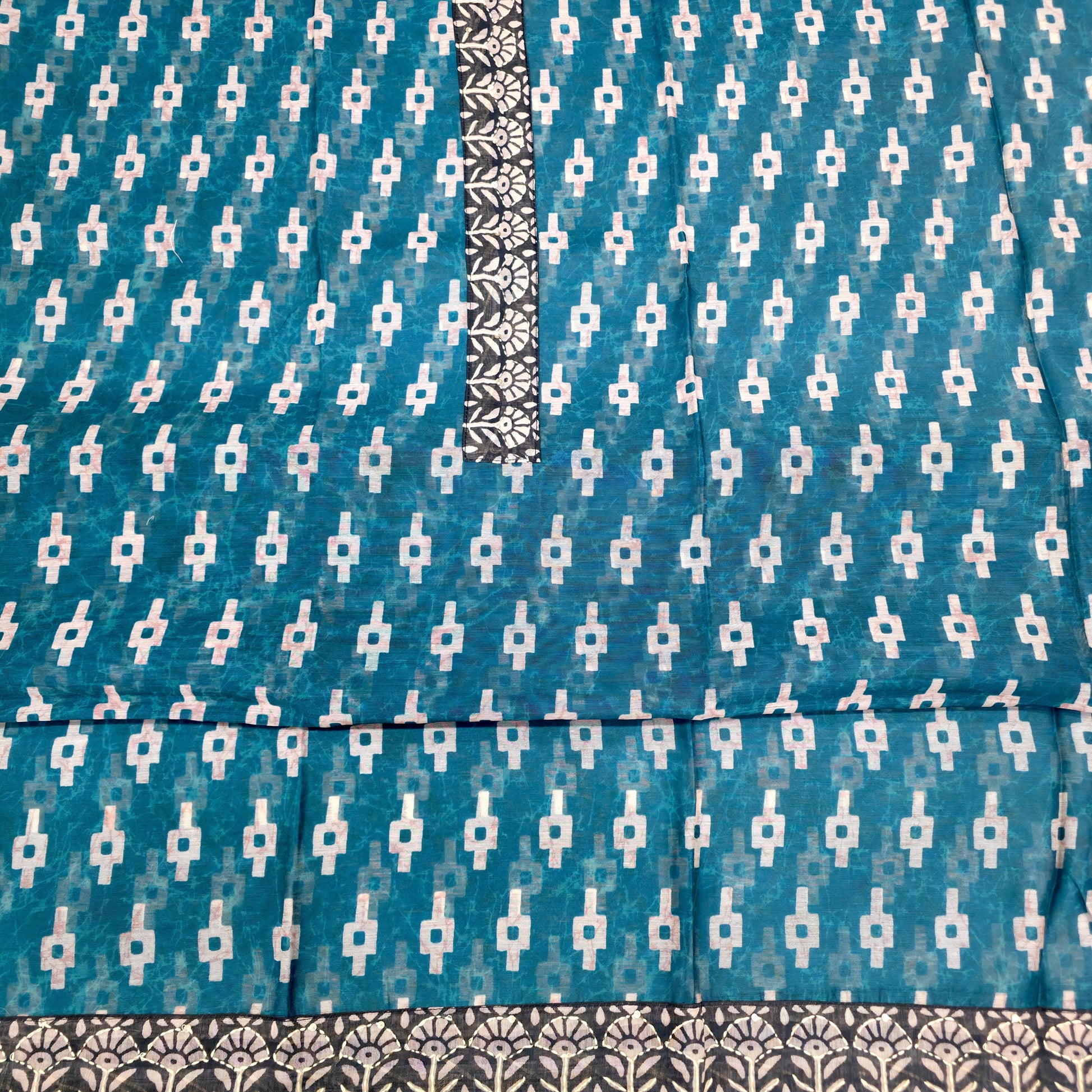 Experience the luxurious feel and rich culture of Indian textiles with our Javer Chanderi Silk Kantha Work Dress Material. This elegant piece is crafted with intricate kantha embroidery, a traditional stitching technique native to West Bengal, India. Feature Bullet Points: - Made with high-quality Chanderi silk for a soft and lustrous finish - Adorned with exquisite kantha work in vibrant colours and patterns - Comes with unstitched fabric, allowing you to customise the fit and style - Perfect for both casual and formal occasions, adding a touch of sophistication to any outfit - Handcrafted by skilled artisans, making each piece unique and one-of-a-kind