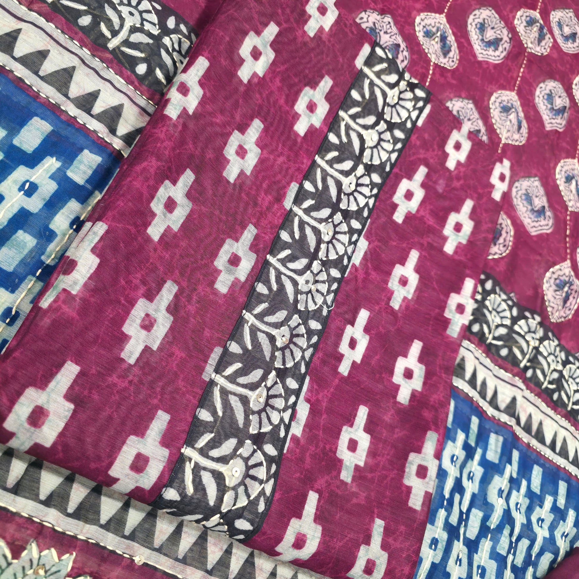 Javer Chanderi Silk Kantha Work Dress Material for Women