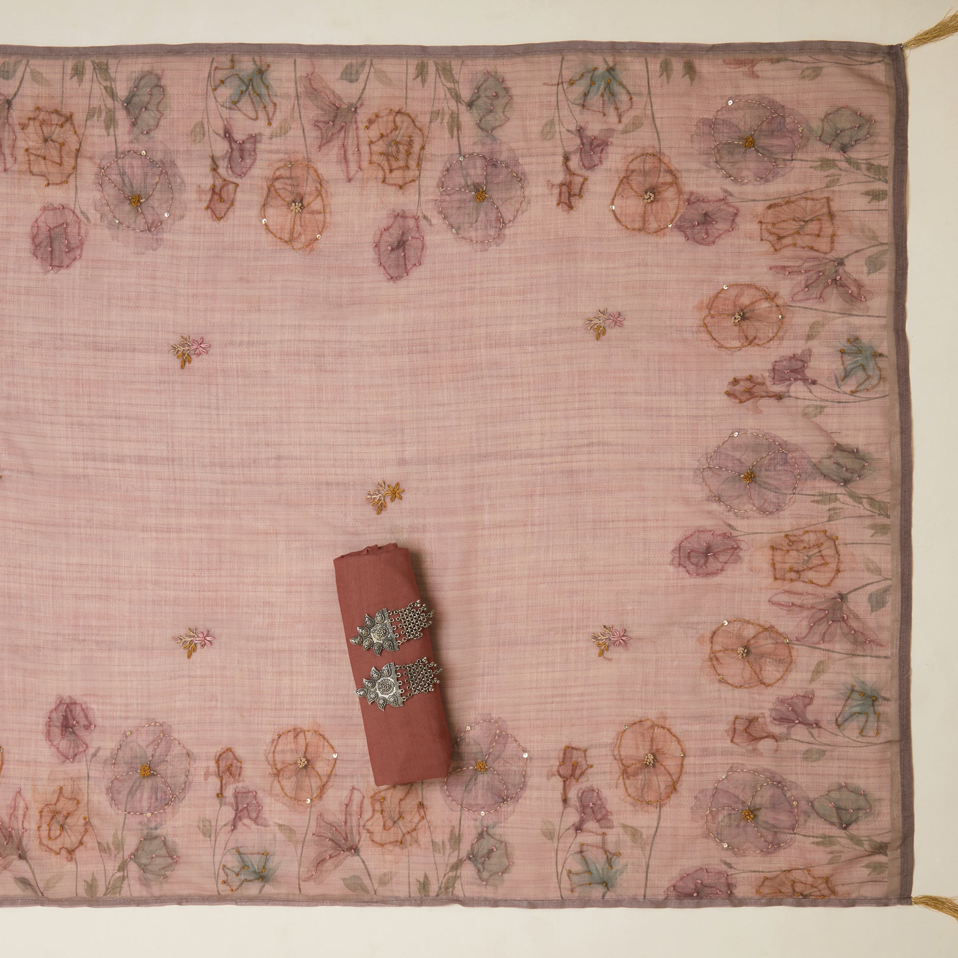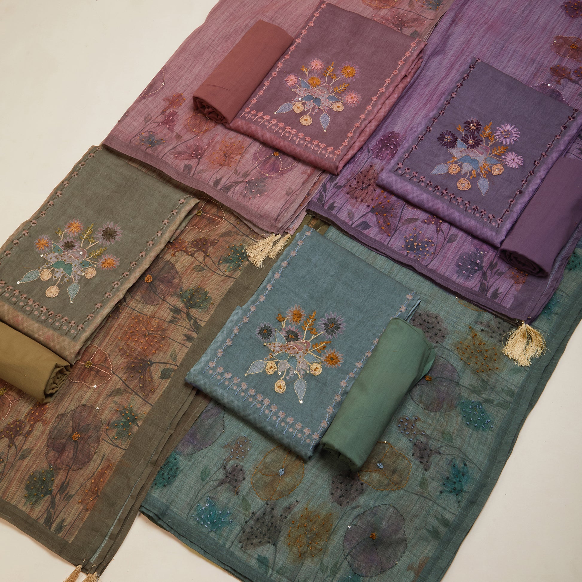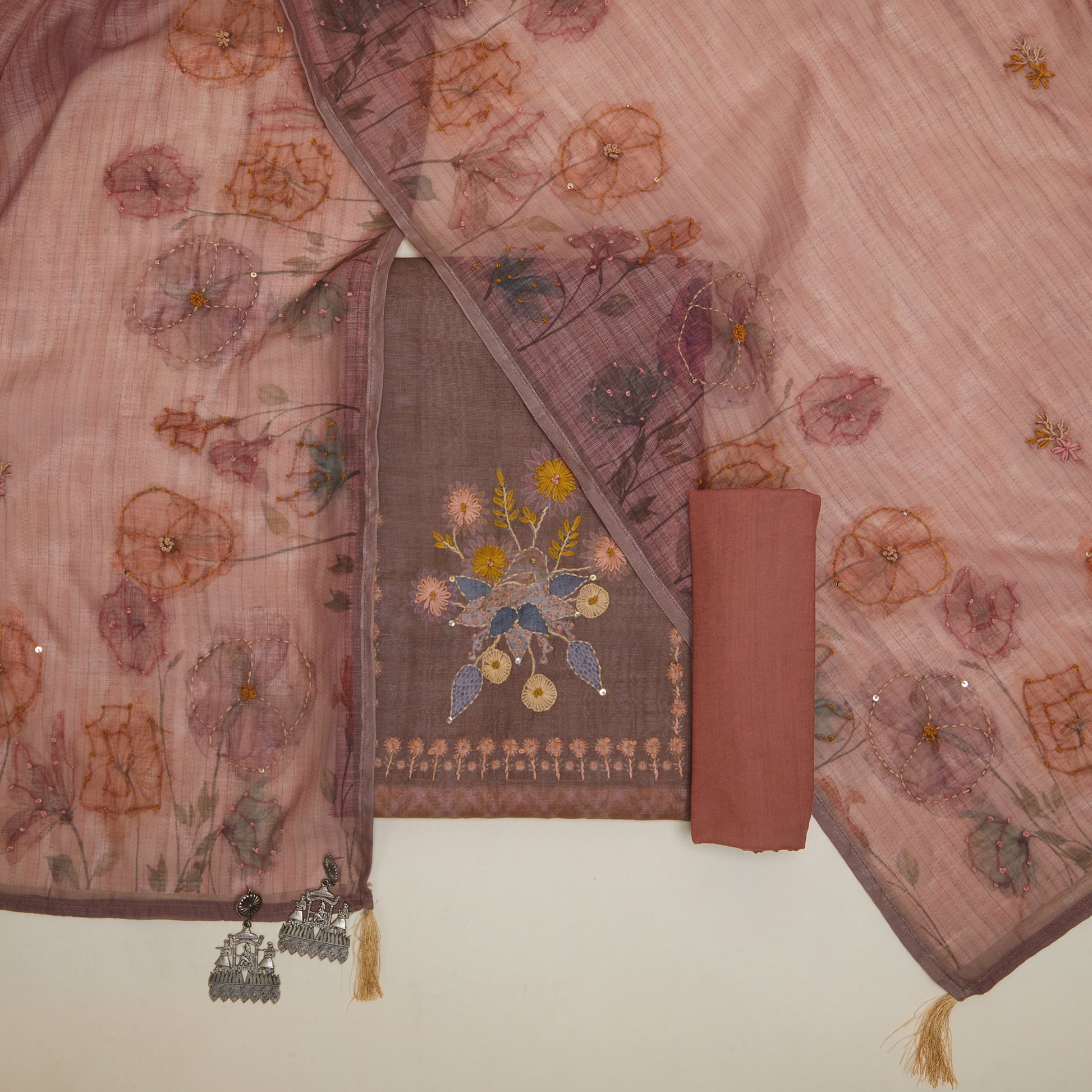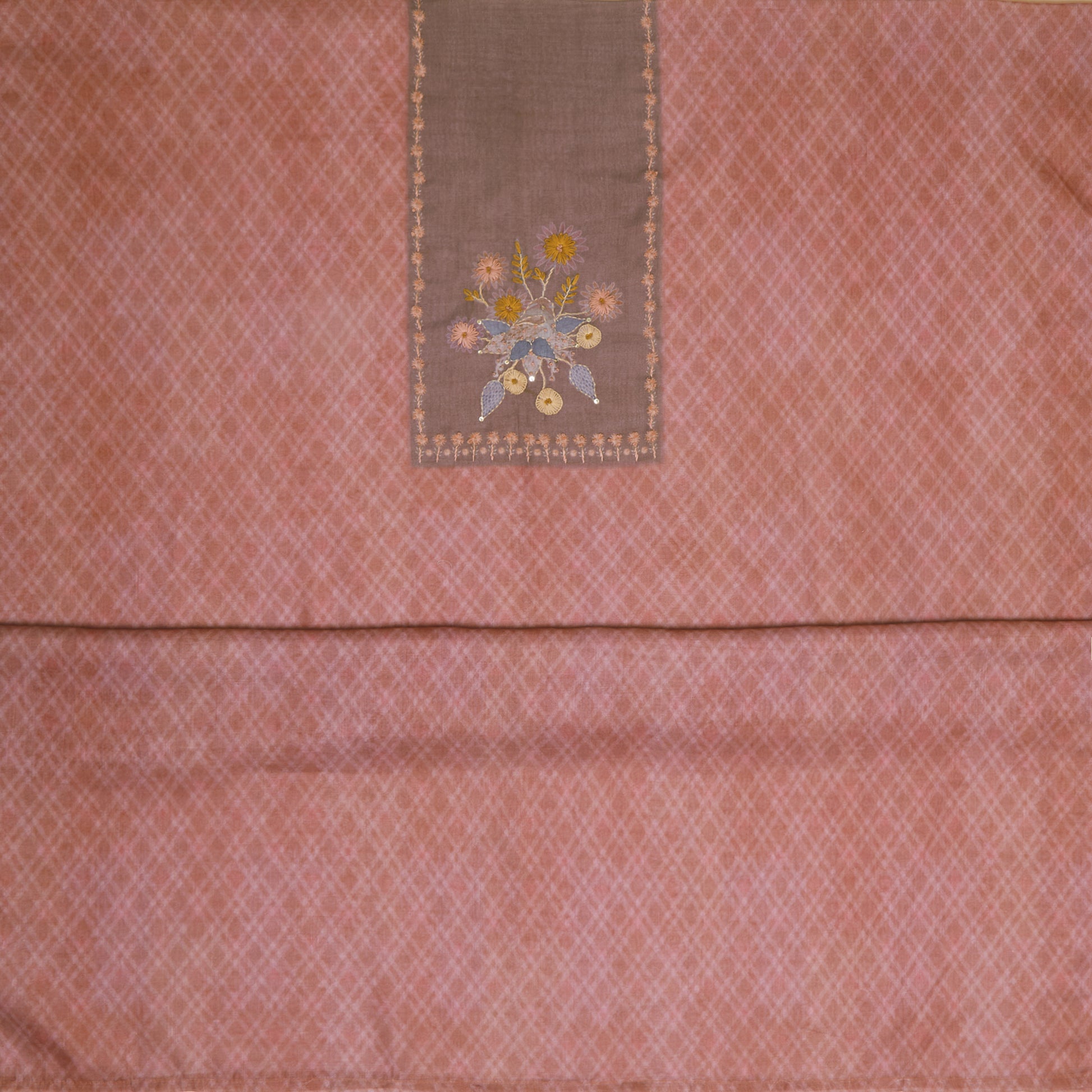 Javer Checkered Linen Kantha hand embroidery & French knots Dress Material