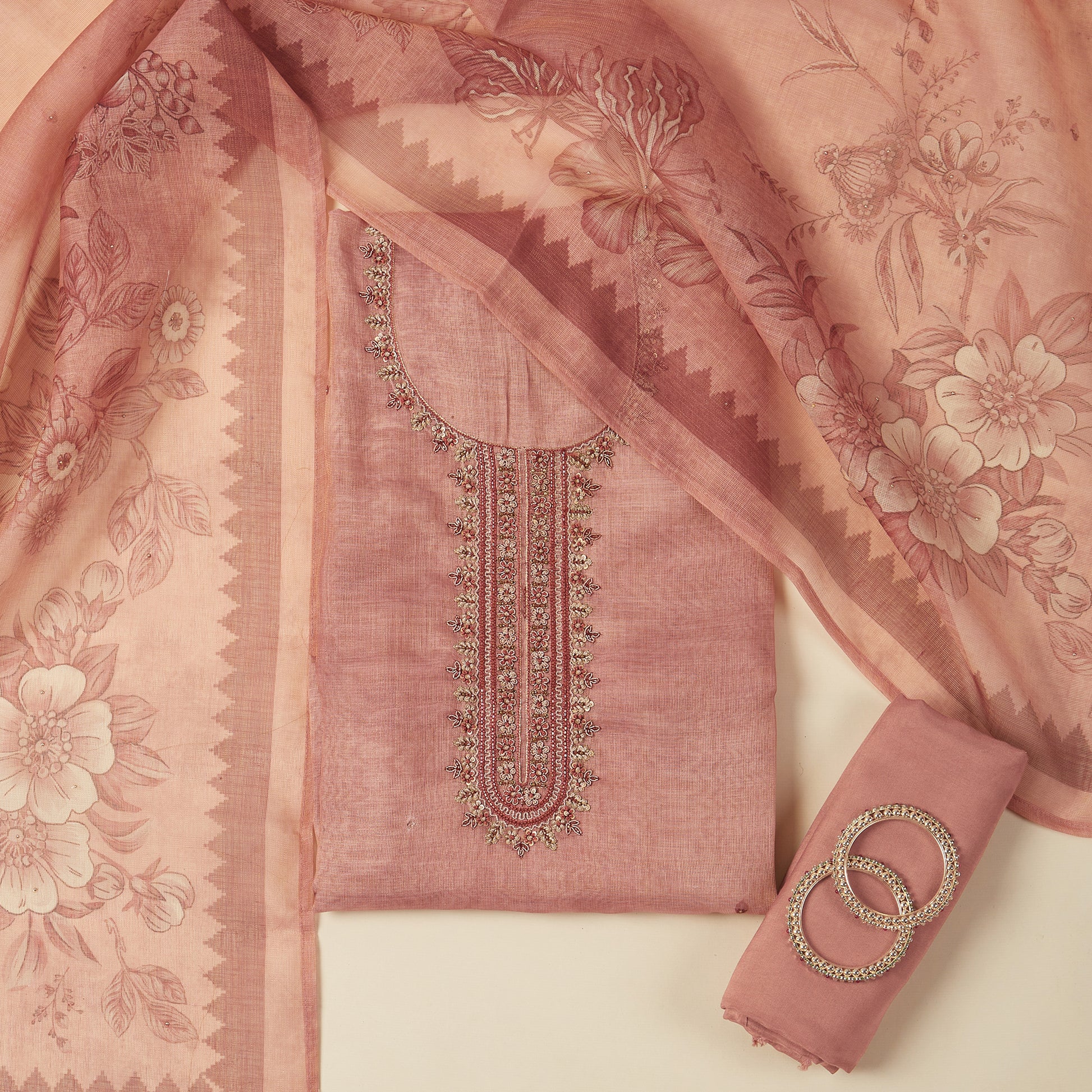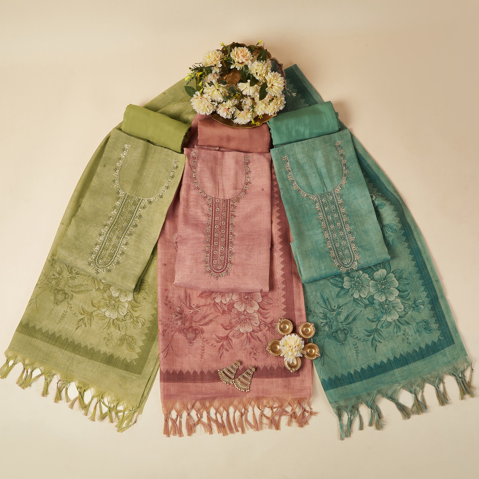 Javer Floral Tissue Linen Zardosi Work Unstitched 3pcs Suit Set for Women