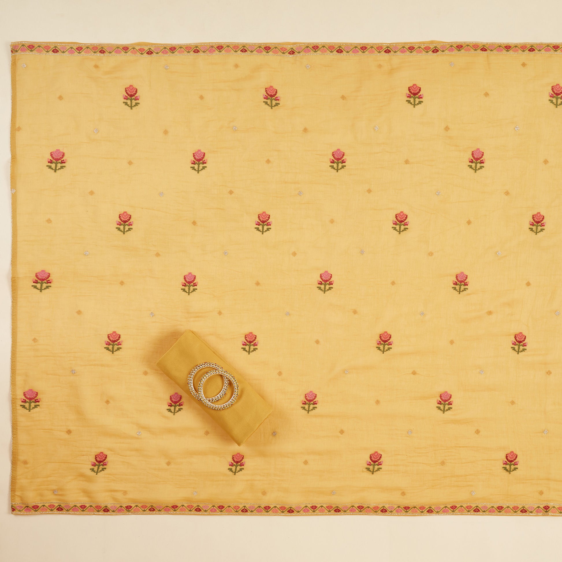 Immerse yourself in the beauty of Chanderi with our Javer Mul Cross-Stitch embroidered suit set. This 3-piece set includes a kurta, dupatta, and bottom piece, perfect for any occasion where you want to make a statement. Feature Bullet Points: - Authentic Chanderi fabric for a soft and luxurious feel - Intricate cross-stitch embroidery adds a touch of elegance and tradition - Unstitched design allows for a personalized and perfect fit - Versatile set can be styled for both formal and casual events - Available in a variety of vibrant colors to suit your individual style.