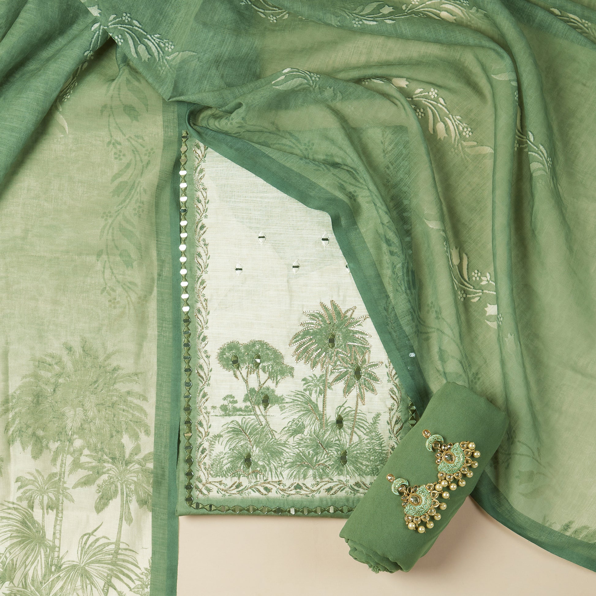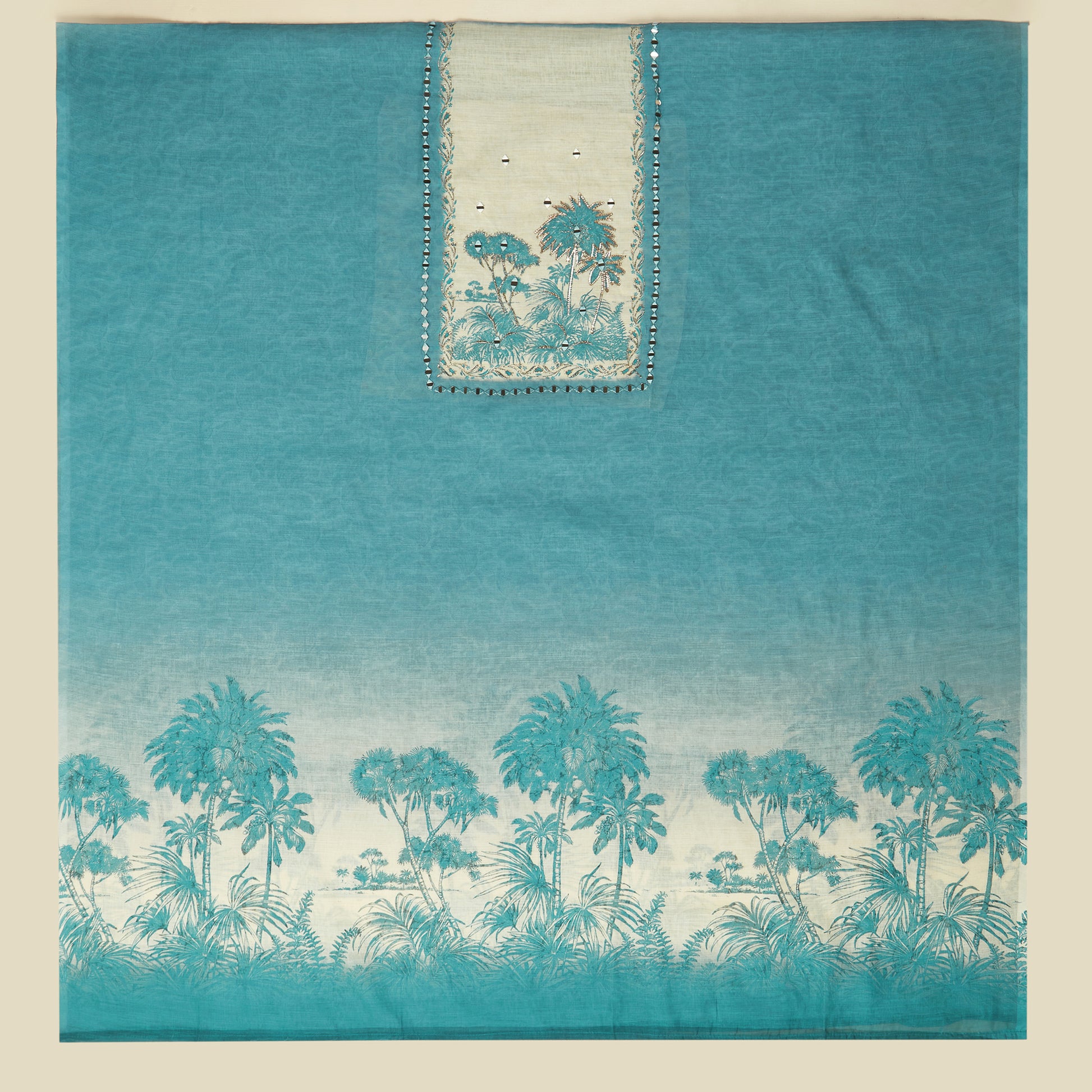 Javer Scenic printed Chanderi Silk Pita & Mirror Hand Work Unstitched 3pcs Suit Set