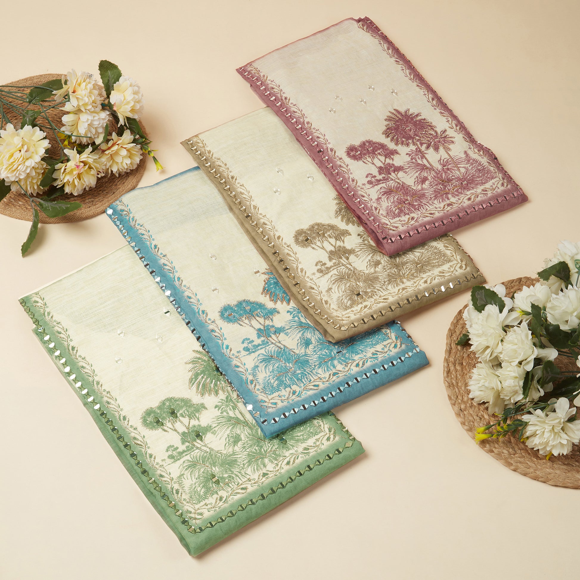 Embrace the beauty of traditional Indian textiles with the Javer Scenic printed Chanderi Silk suit set. This unstitched 3-piece set features intricate handwork and exquisite details, perfect for any special occasion. Feature Bullet Points: - Luxurious Chanderi Silk fabric for a soft and comfortable feel - Stunning scenic print design for a unique and eye-catching look - Handcrafted with delicate Pita and Mirror work for added elegance - Versatile and customizable with an unstitched design - Includes a top, bottom, and dupatta for a complete and coordinated ensemble