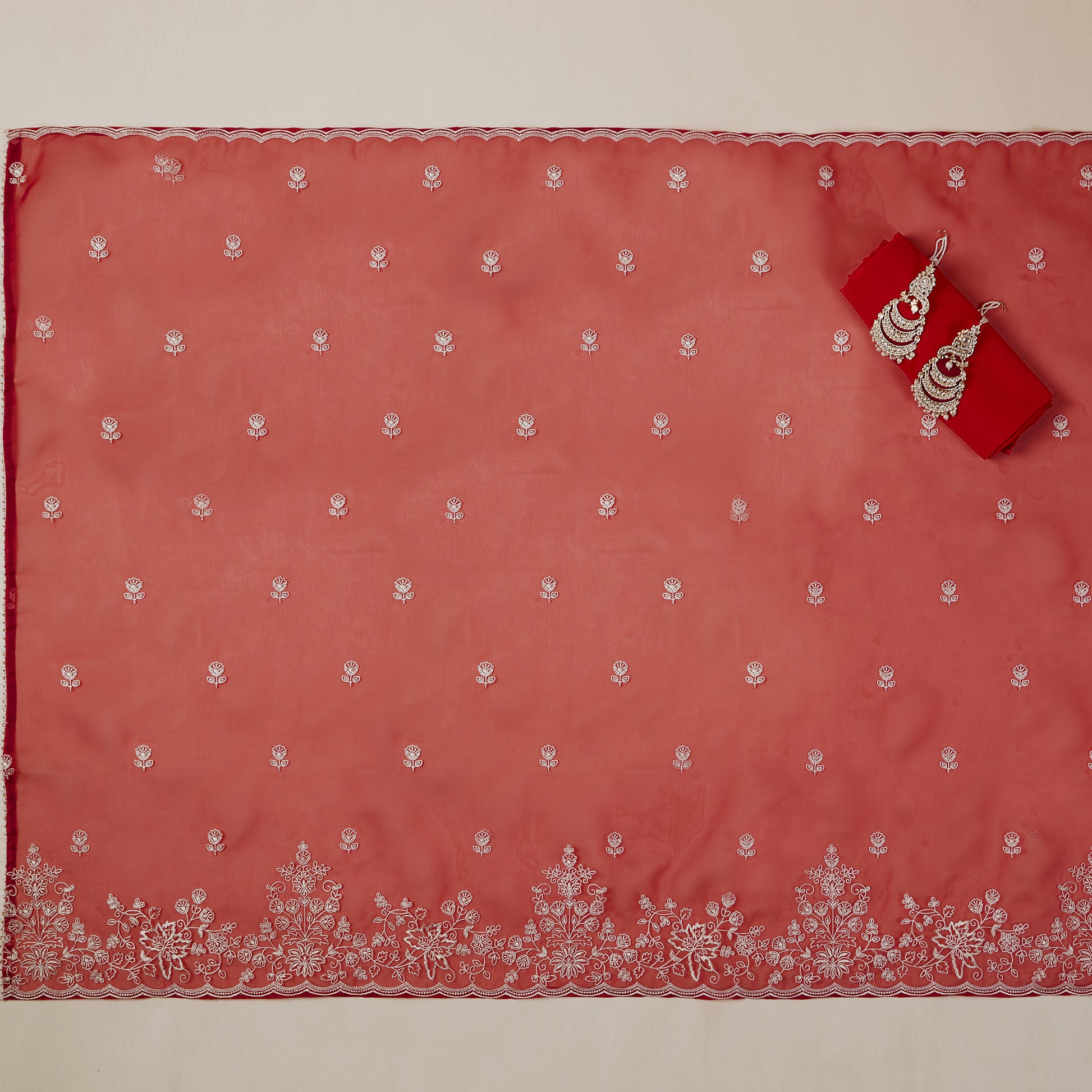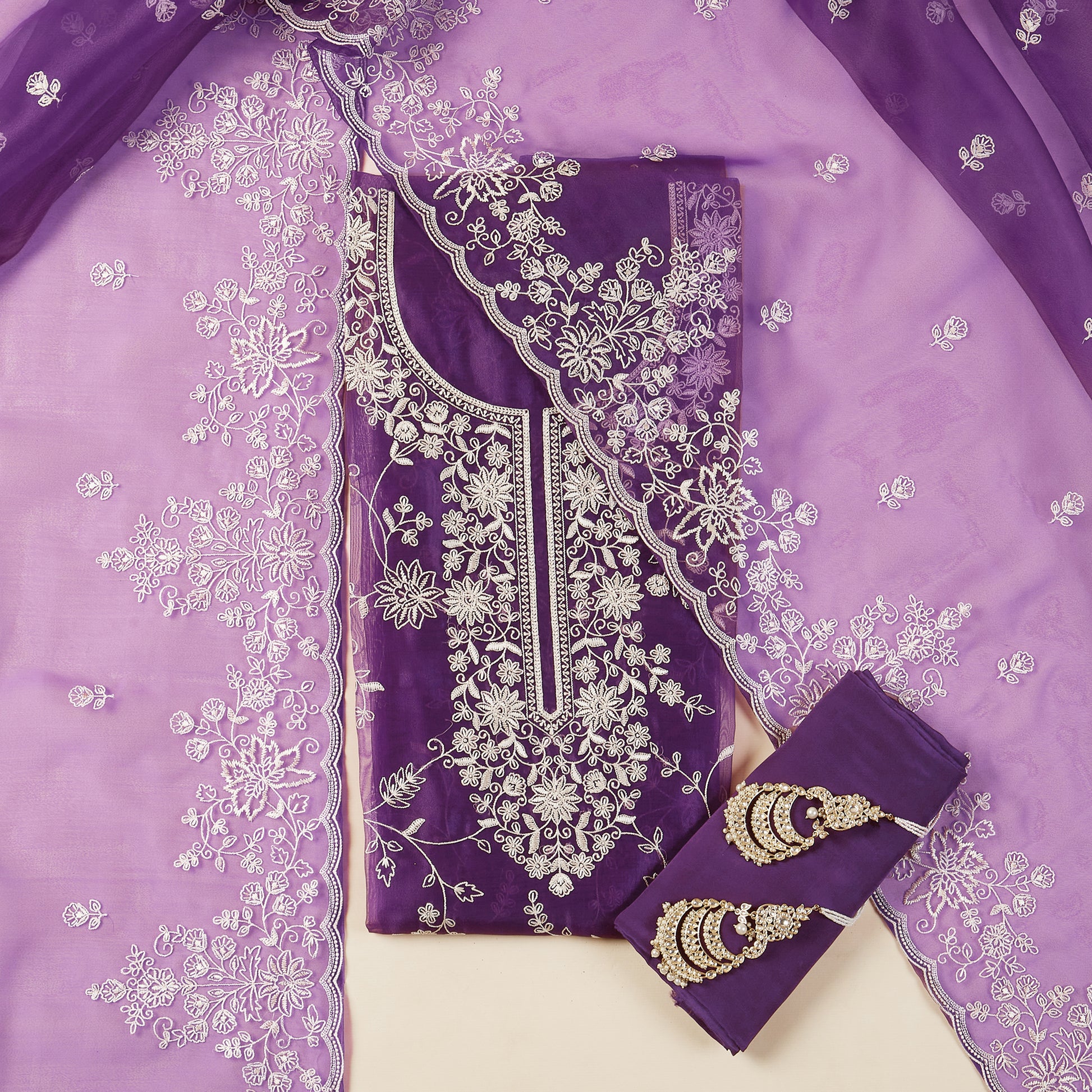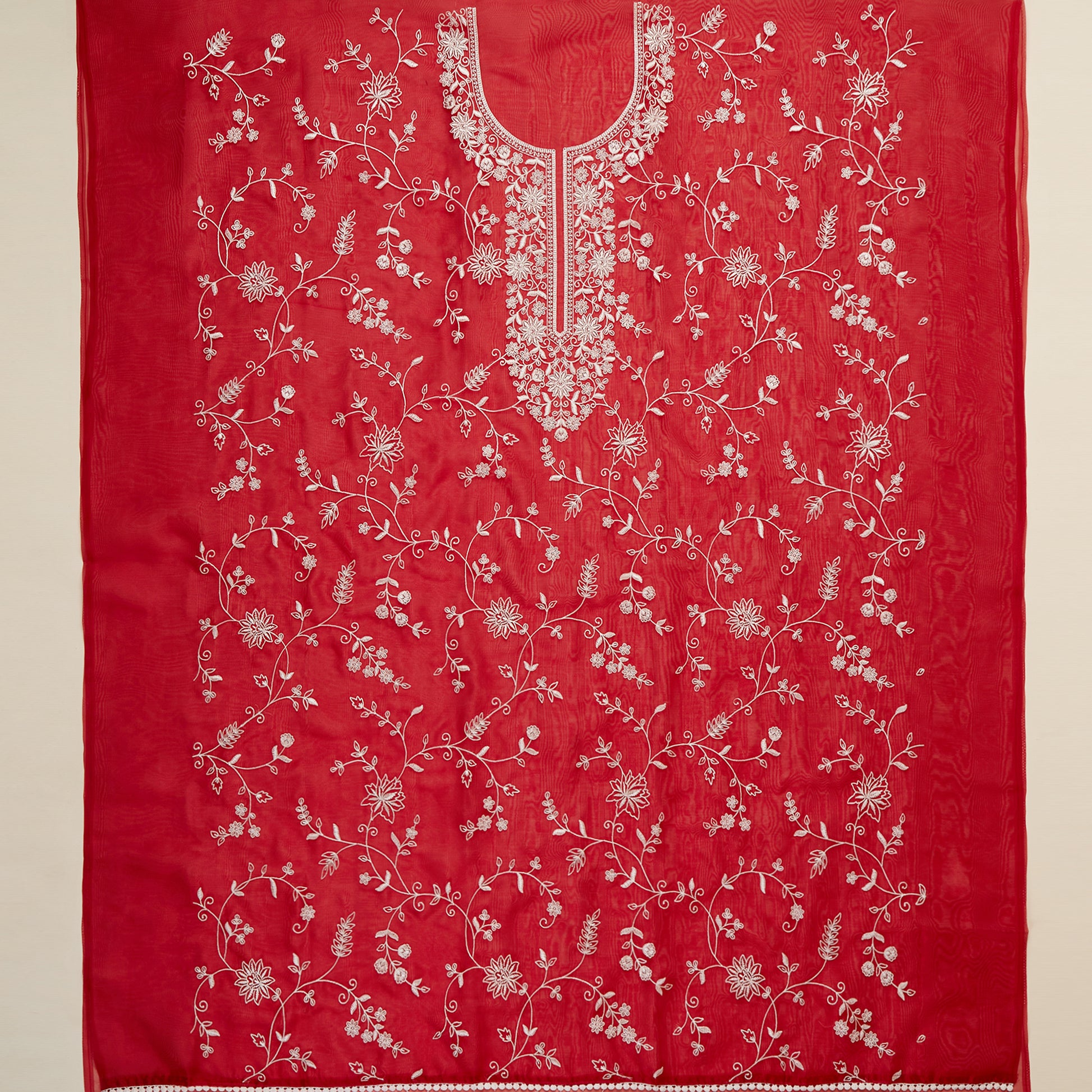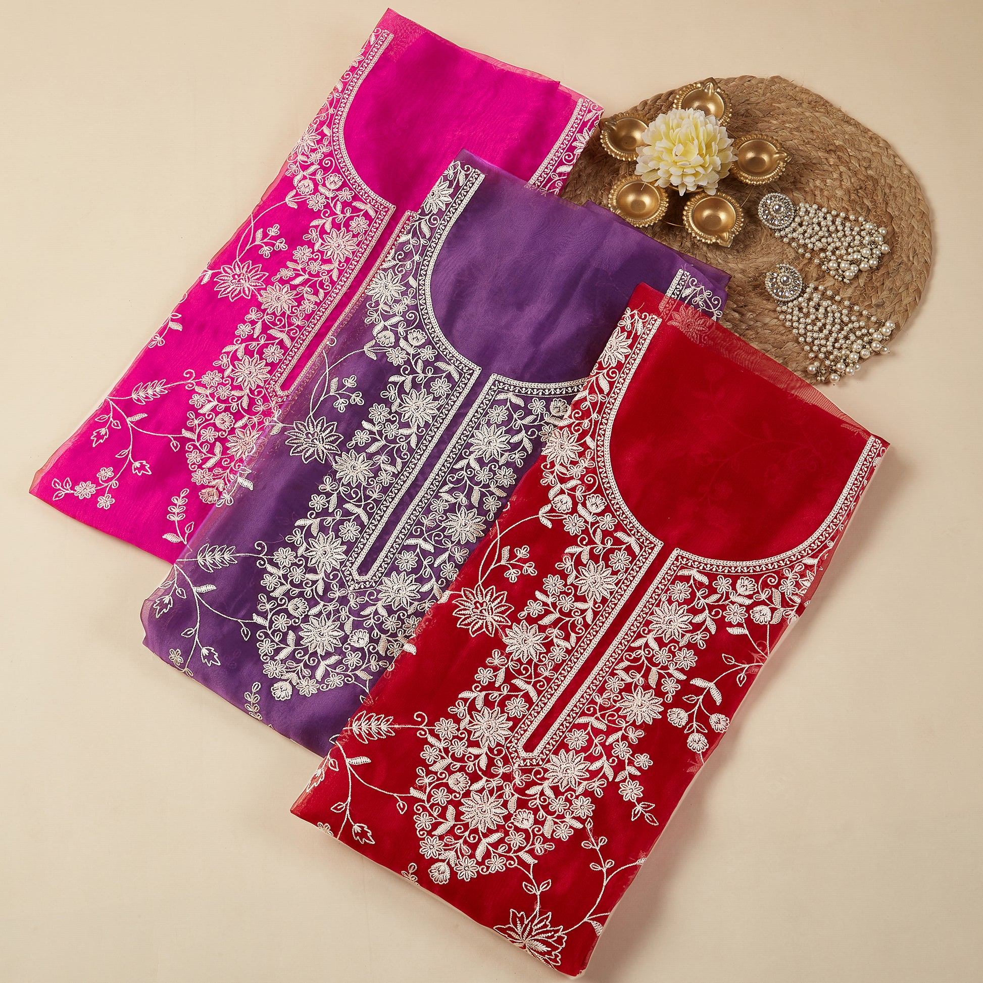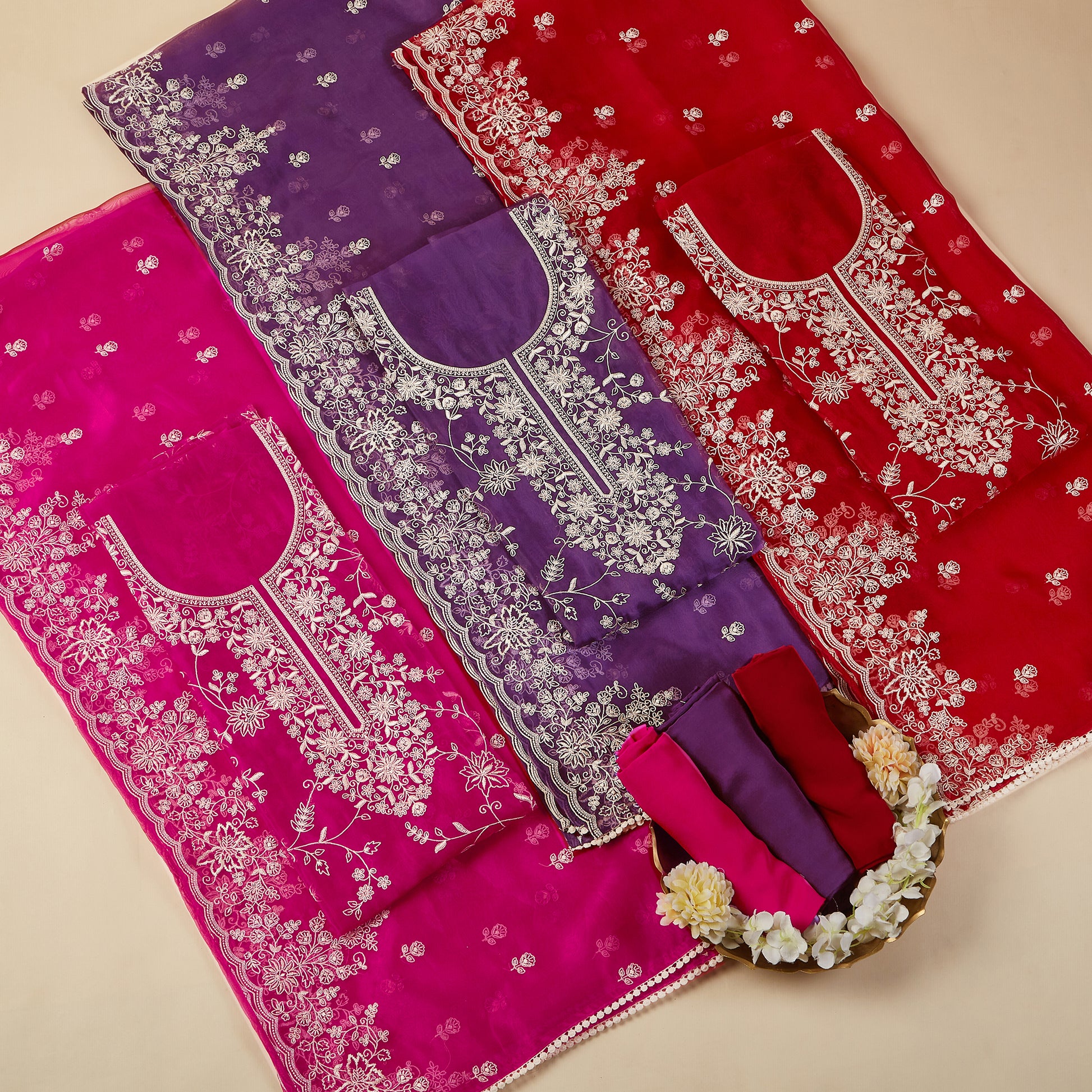 Javer Tissue Silk all-over Floral Parsi Thread Work Unstitched 3 pcs Dress Material