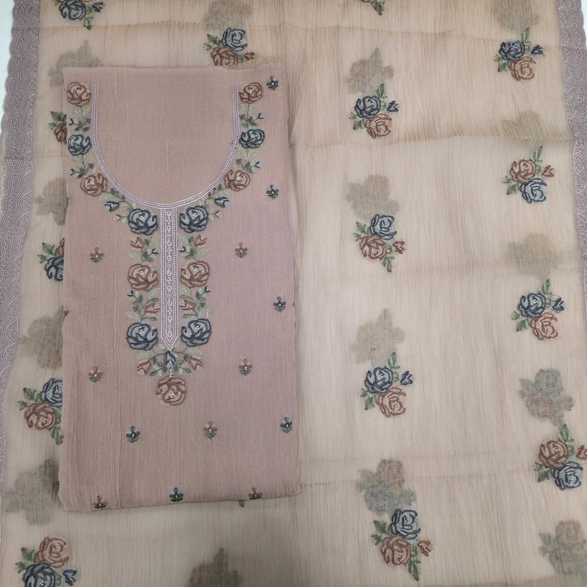 Elevate your look by pairing these Unstitched Suit Set with statement earrings and elegant gold jewelry for a graceful and fashionable appearance. An ethnic outfit goes best with a bindi and gorgeous hair accessories too. Pair it up with flats or heels whichever comforts you and you’re good to go.