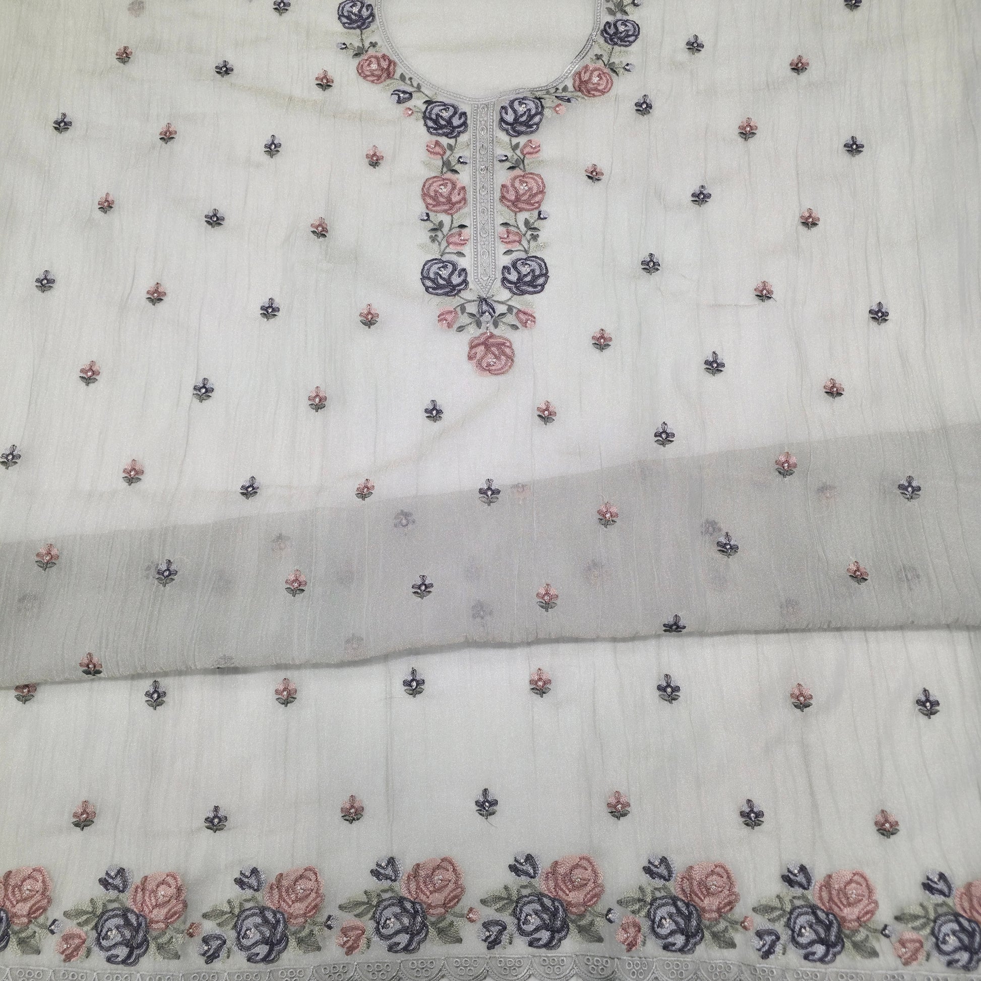 Use the 2.5 meters of top fabric and 2.5 meters of bottom fabric to customize the fit of the unstitched kurta & bottom to enhance your silhouette, ensuring a comfortable and tailored ensemble that allows you to celebrate the festivities with confidenc