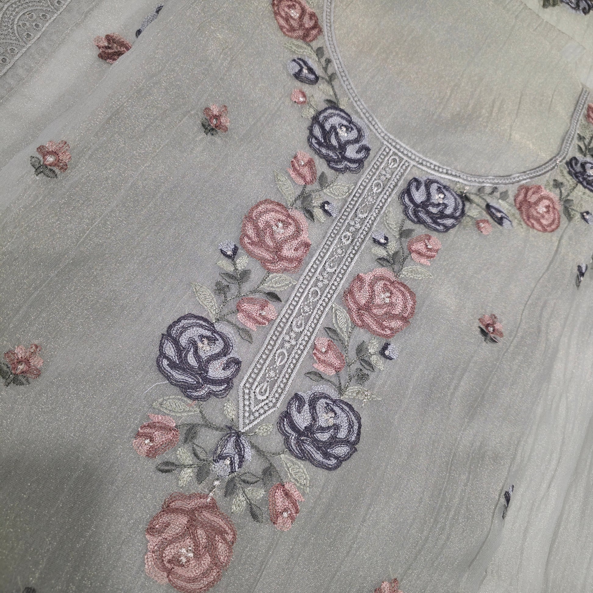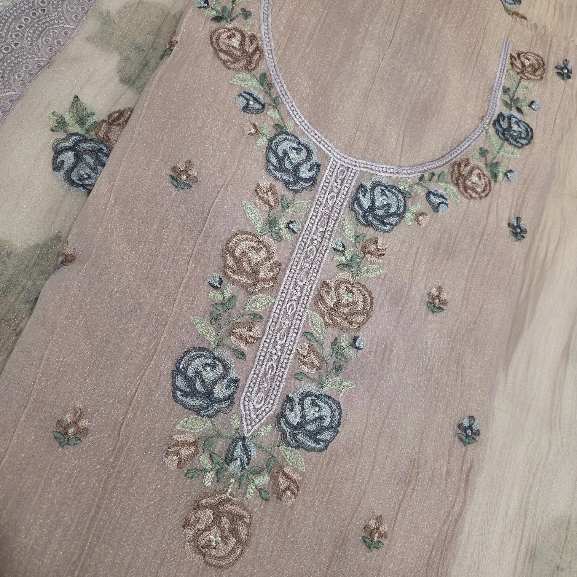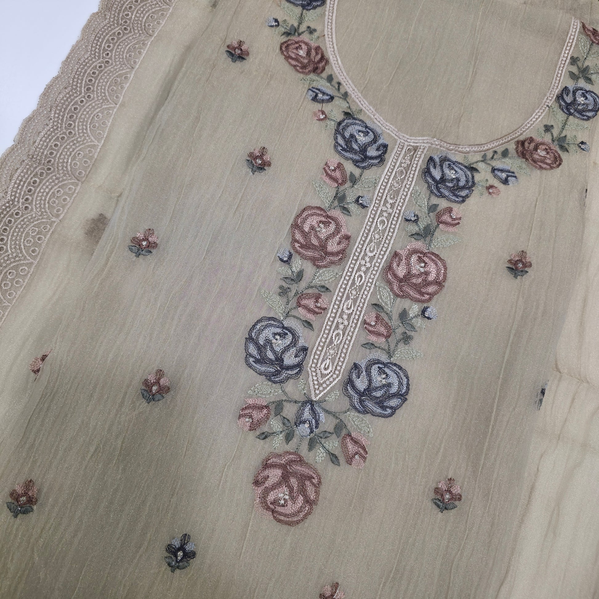 Unleash your inner fashionista with the Javer Tissue Silk Thread Work Dress Material for Women. This exquisite dress material is handcrafted with the finest tissue silk and features delicate thread work, perfect for adding a touch of elegance to any occasion." Feature Bullet Points: - Luxurious tissue silk material for a soft, smooth, and lightweight feel - Intricate thread work adds a touch of sophistication and charm - Versatile dress material can be tailored to your desired style and fit - Perfect for special occasions, weddings, or formal events - Comes with a matching dupatta and bottom fabric for a complete and coordinated look