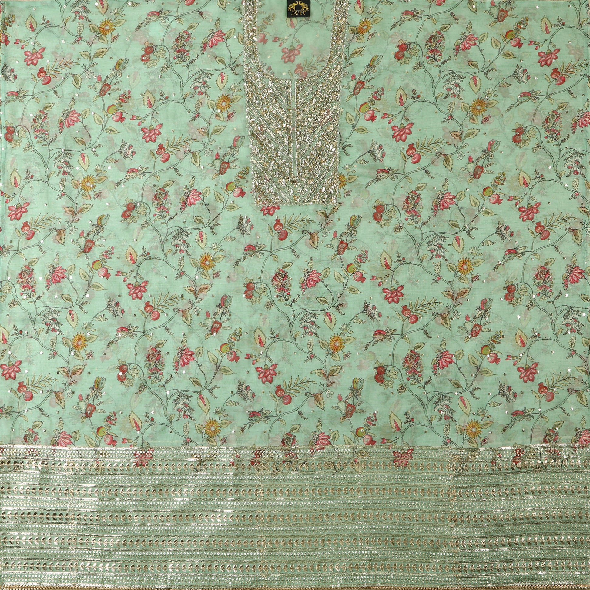 Javer Unstitched Suit Set for Women - Organza Kalamkari print with Zardosi work