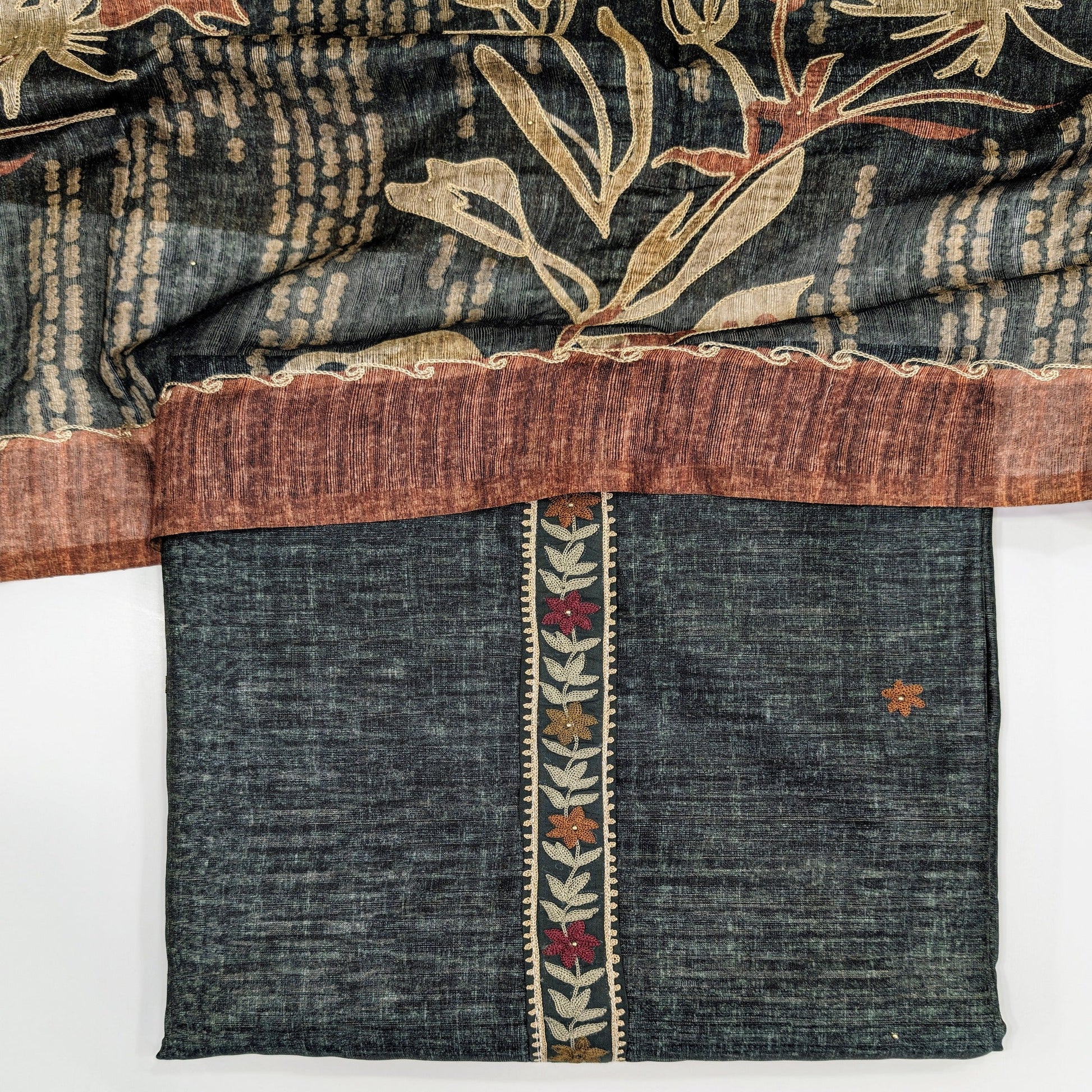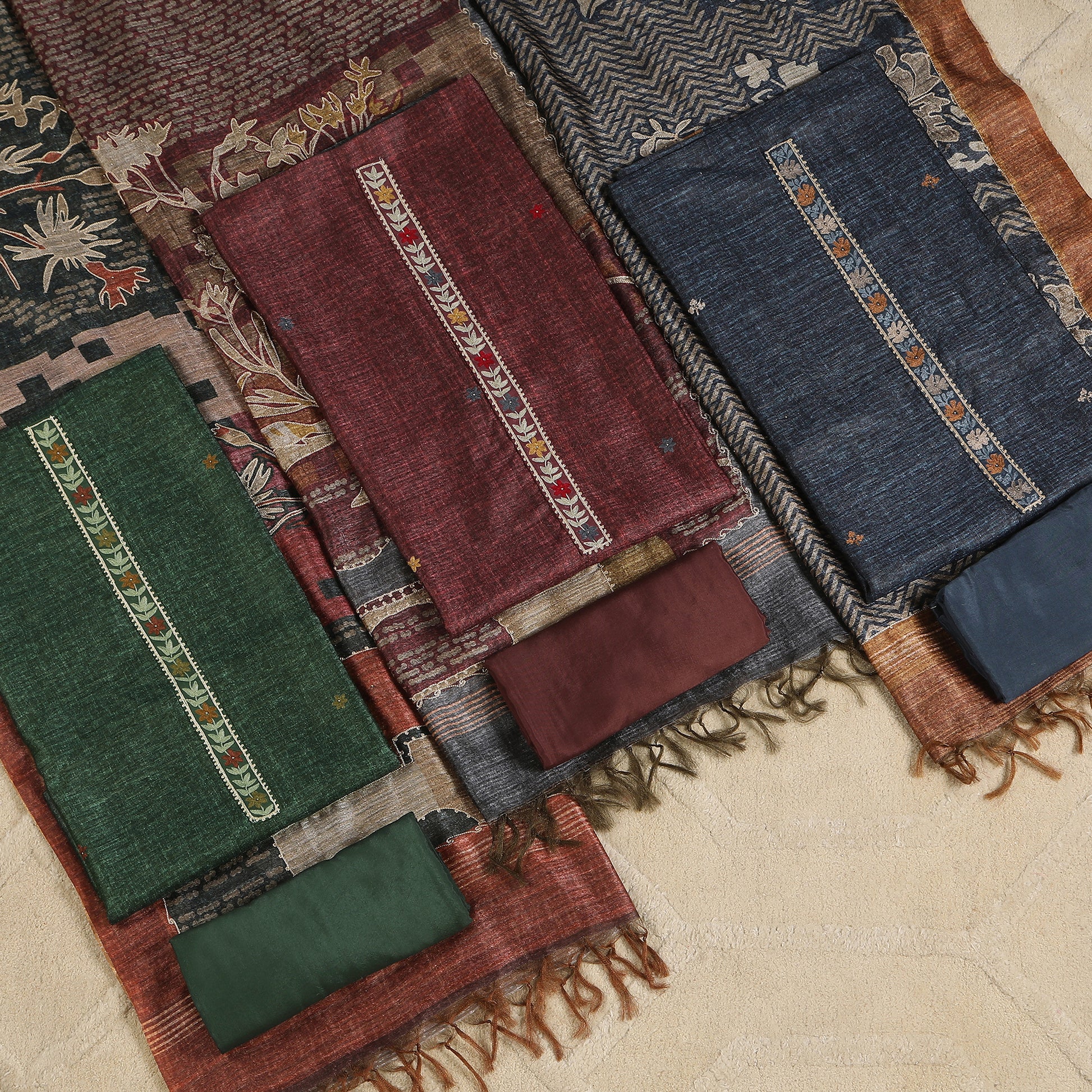 Javer Unstitched Suit Set for Women - Chanderi Silk Thread Work