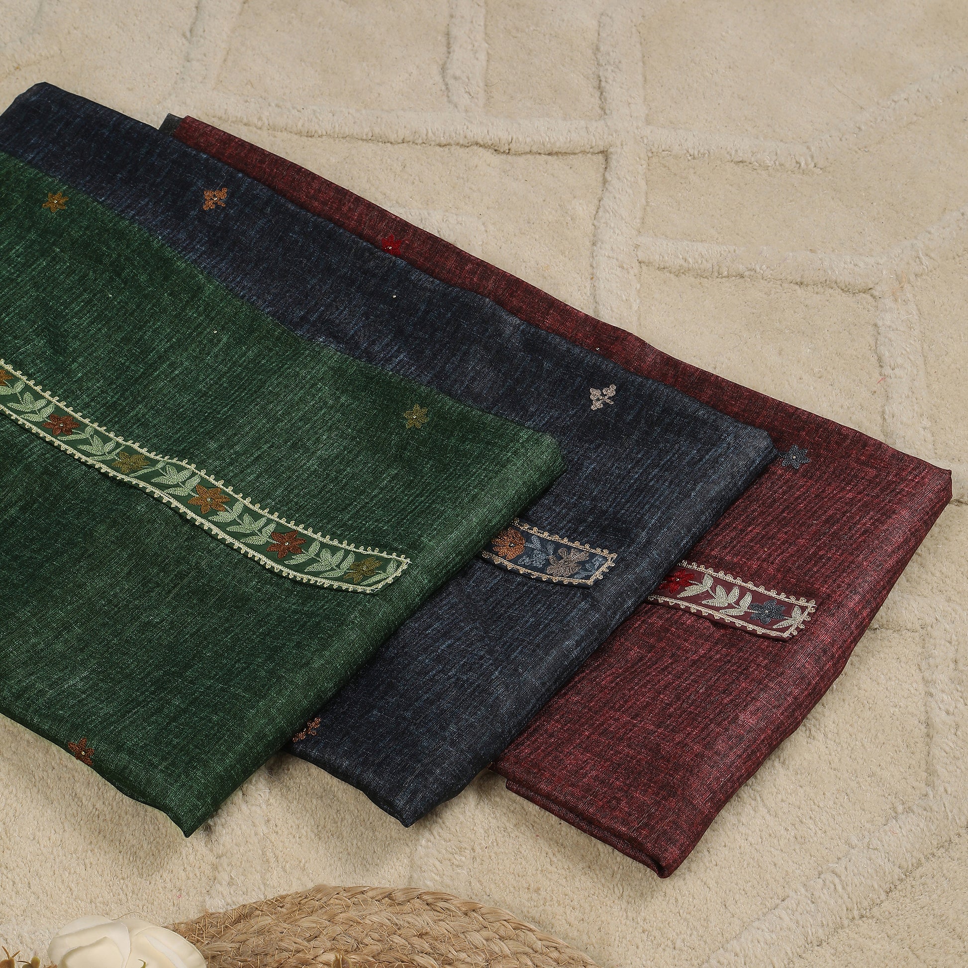 Elevate your look by pairing these Unstitched Suit Set with statement earrings and elegant gold jewelry for a graceful and fashionable appearance. An ethnic outfit goes best with a bindi and gorgeous hair accessories too. Pair it up with flats or heels whichever comforts you and you’re good to go.