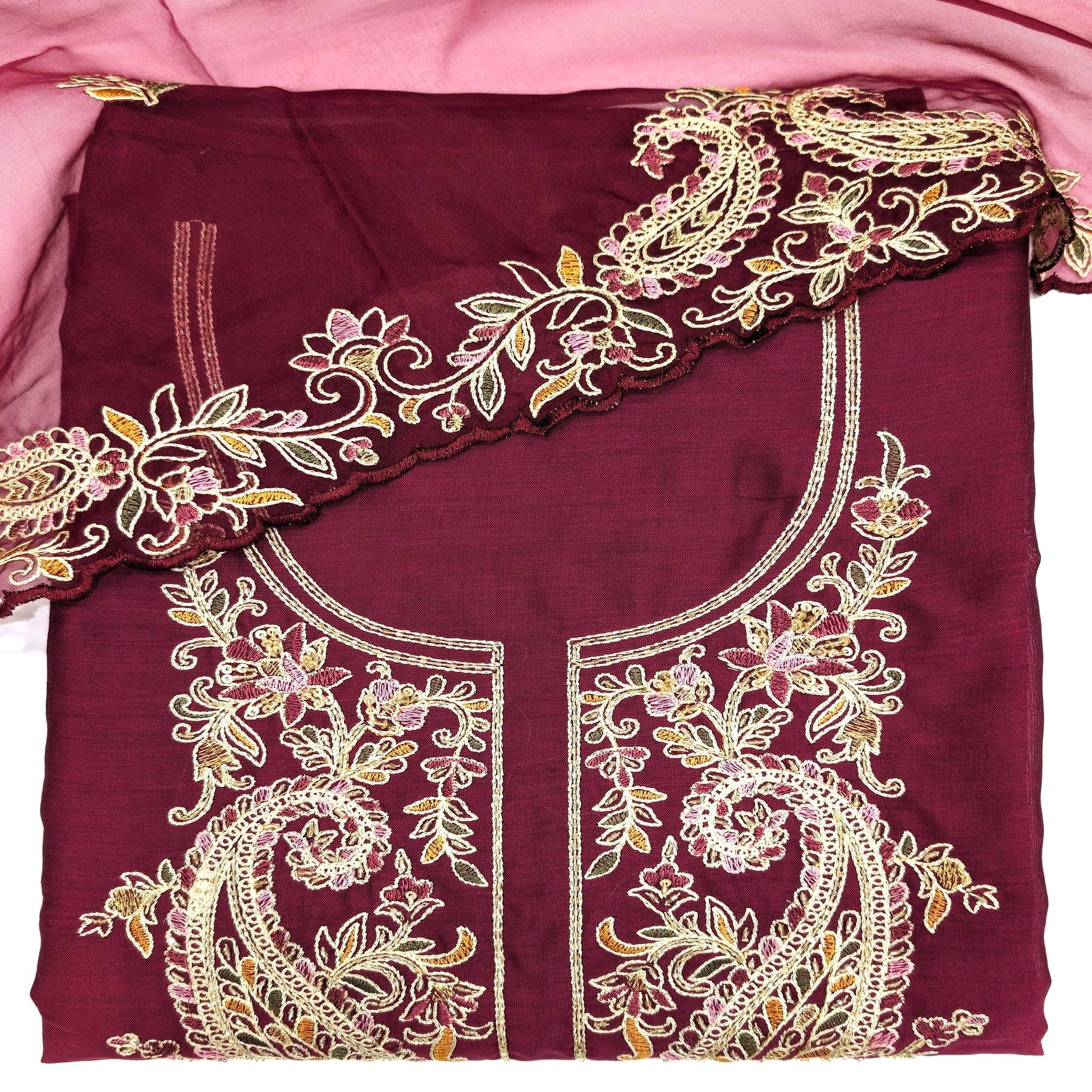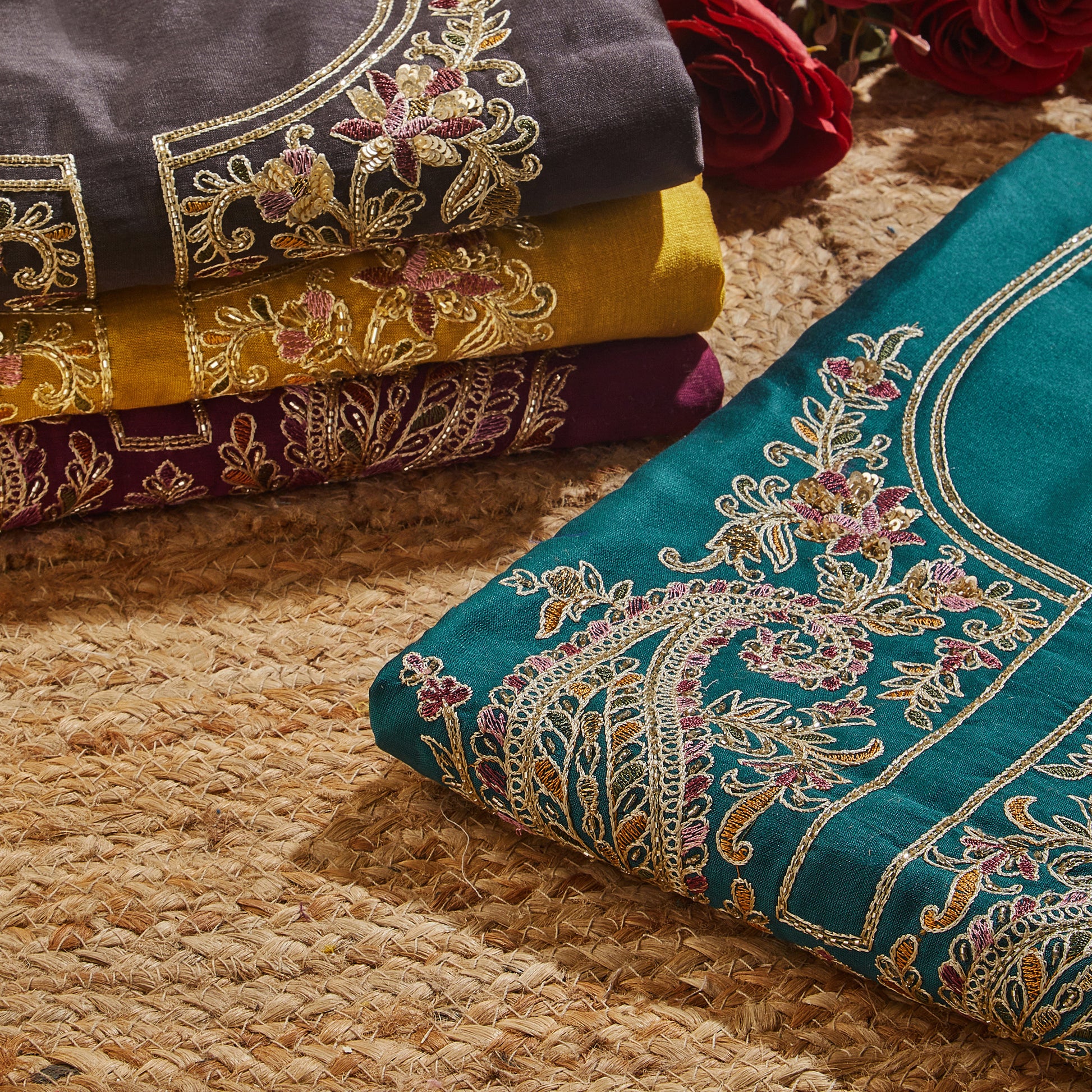 Javer Unstitched Suit Set for Women - Chanderi Silk Zari thread work