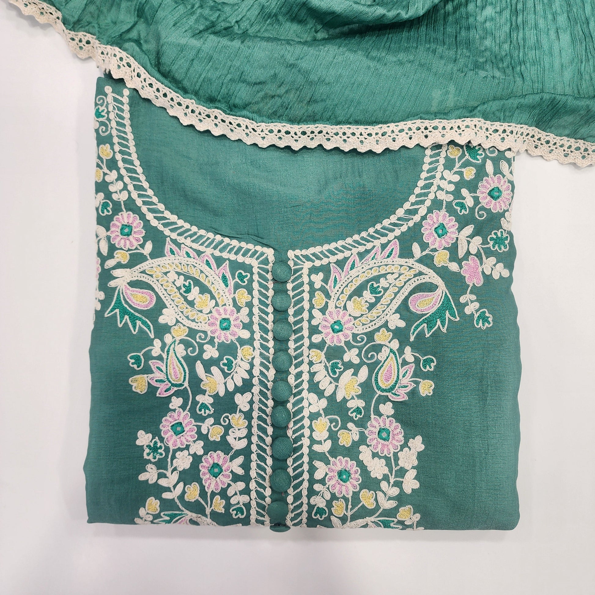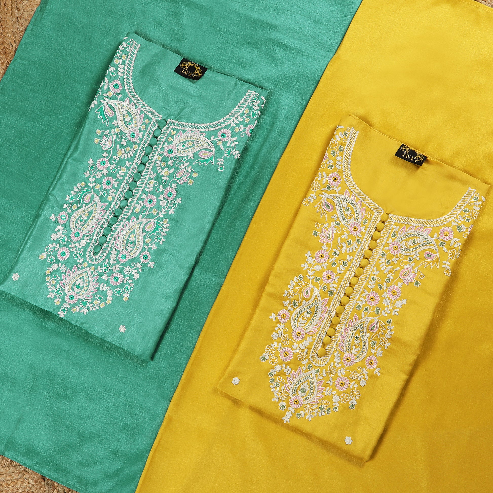Javer Unstitched Suit Set for Women - Chanderi Silk Zari thread work