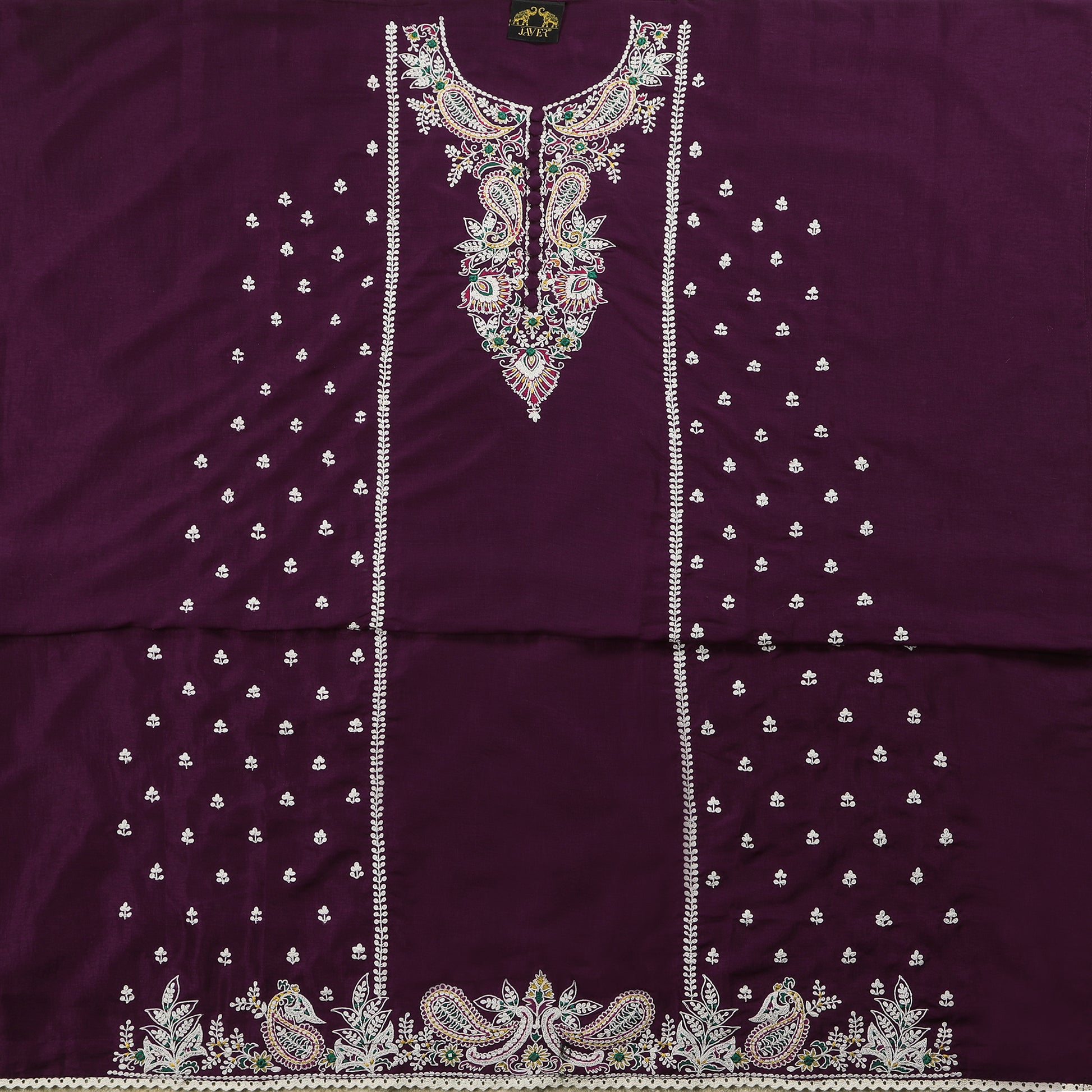 Javer Unstitched Suit Set for Women - Chanderi Silk Zari thread work