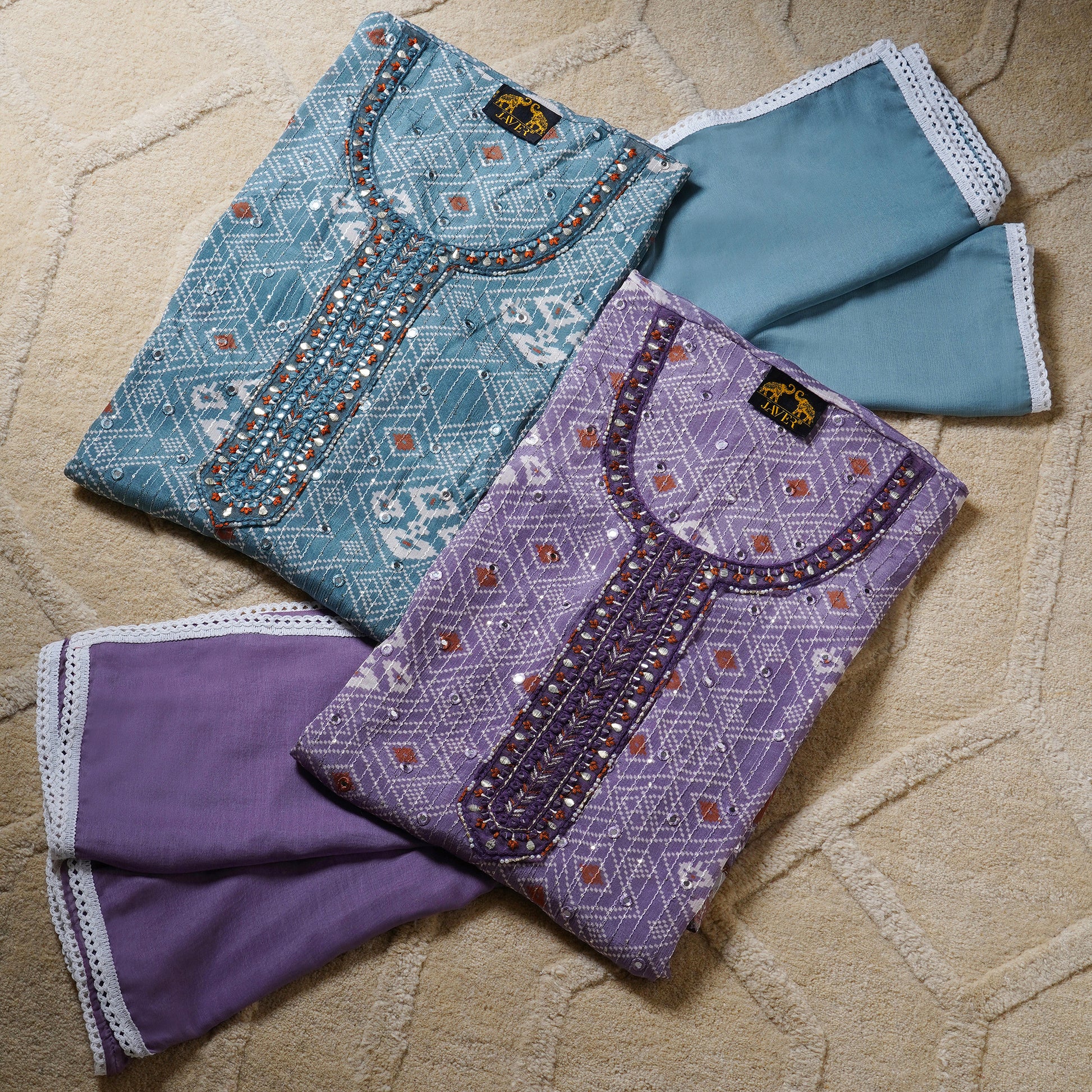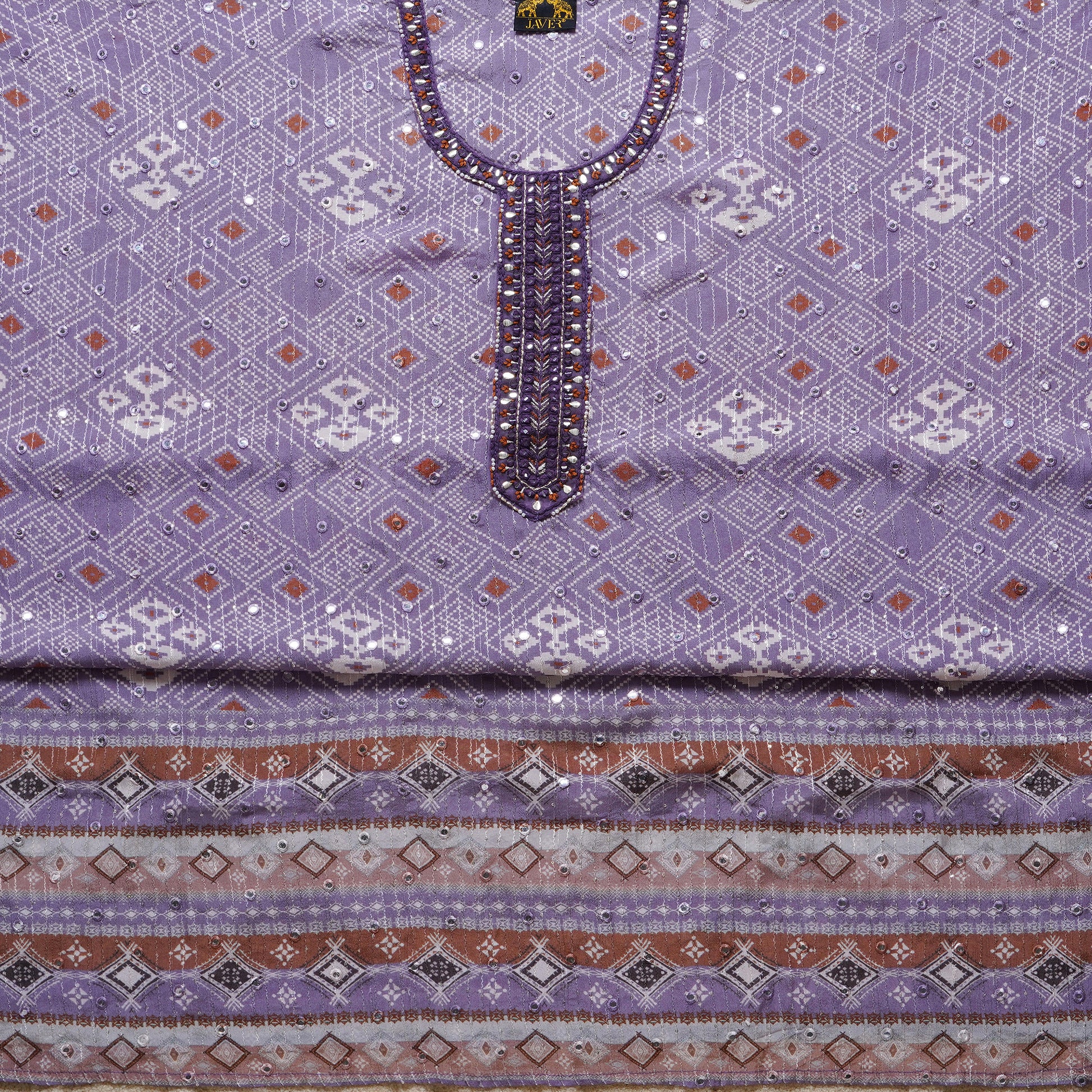 Elevate your look by pairing these Unstitched Suit Set with statement earrings and elegant gold jewelry for a graceful and fashionable appearance. An ethnic outfit goes best with a bindi and gorgeous hair accessories too. Pair it up with flats or heels whichever comforts you and you’re good to go.