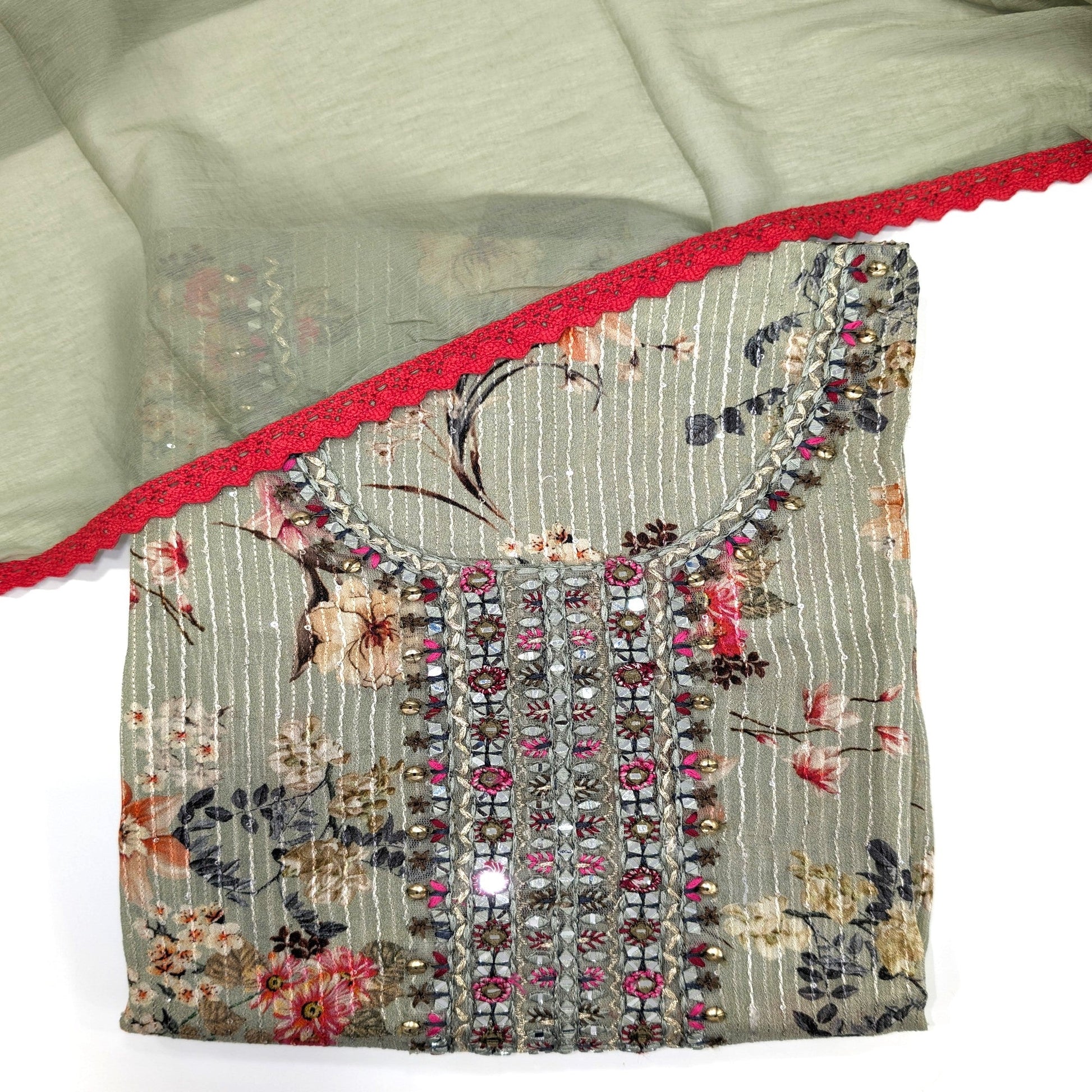 Javer Unstitched Suit Set for Women - Georgette Floral print with Mirror work