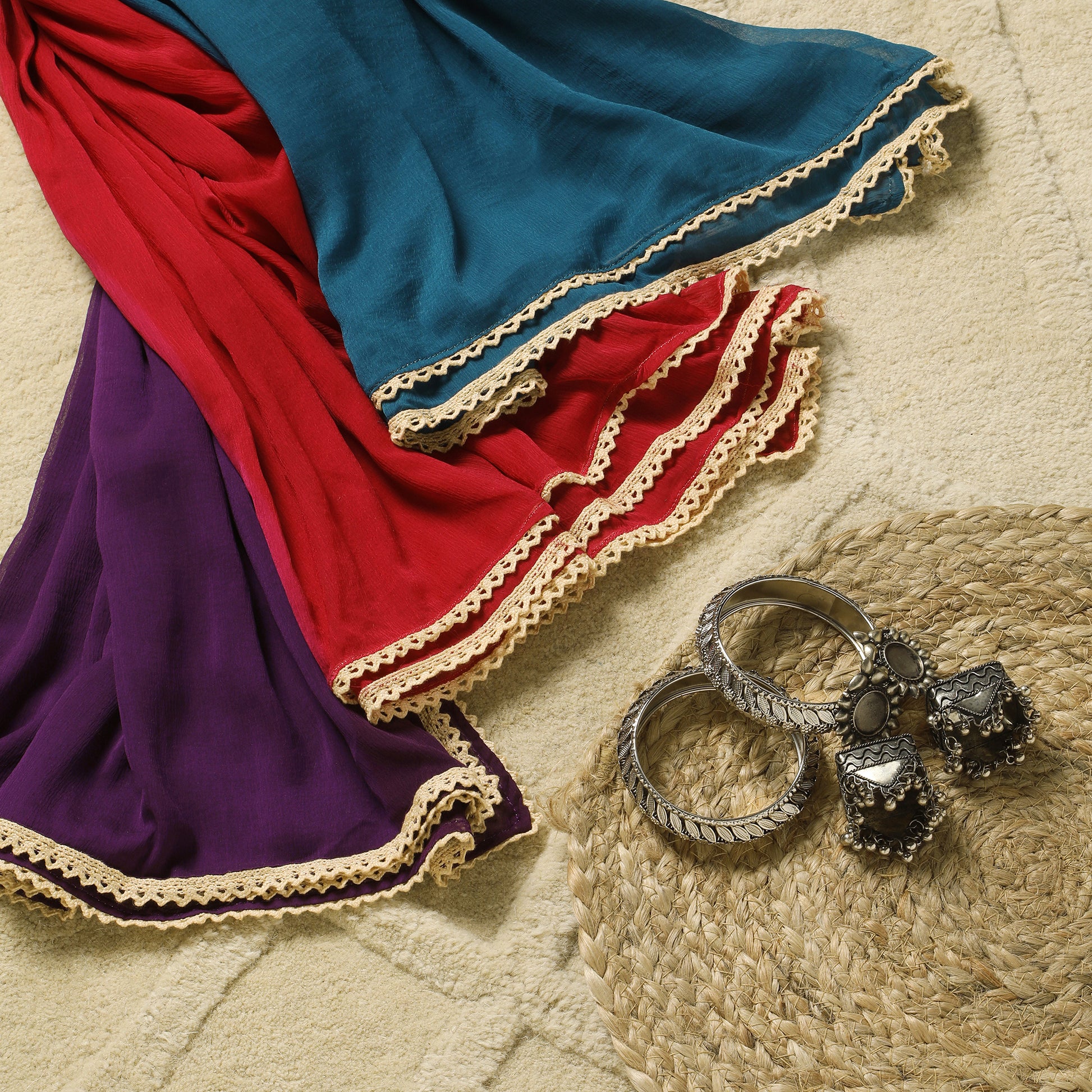 - Handcrafted with the traditional Ajrak print, a timeless Indian design known for its intricate patterns and vibrant colors
