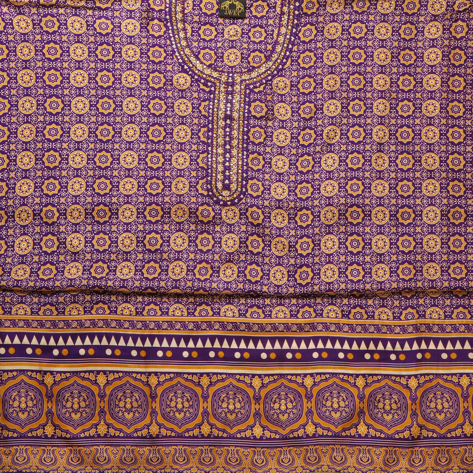 Javer Unstitched Suit Set for Women - Muslin Ajrak print with Mirror work