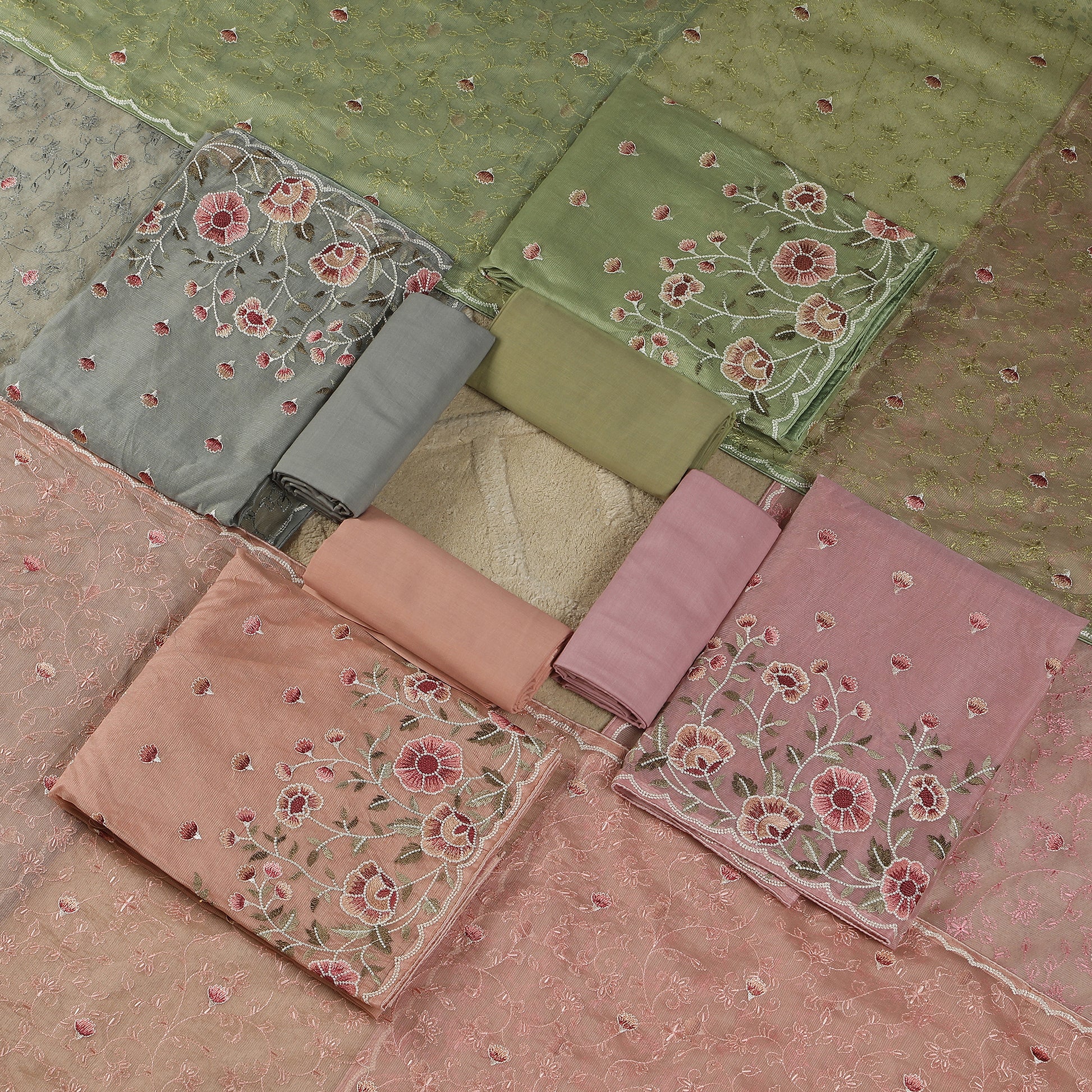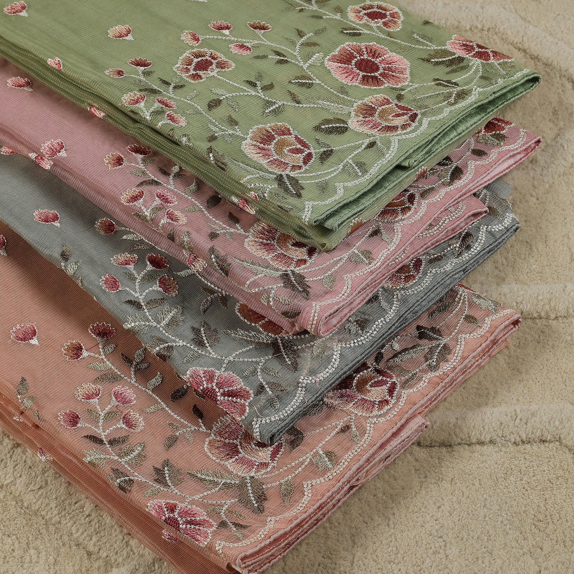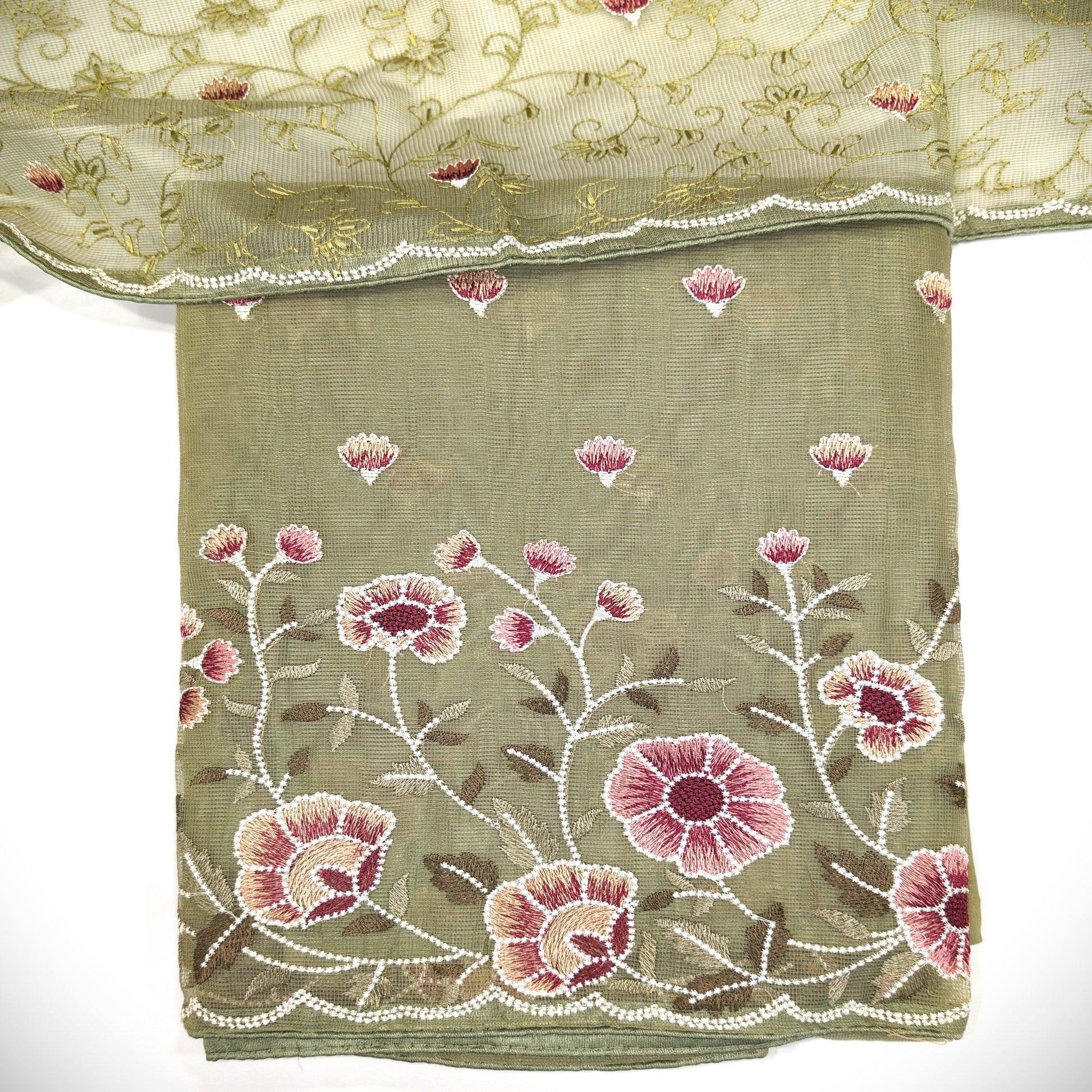 Javer Unstitched Suit Set for Women - Kota Silk Floral Embroidery