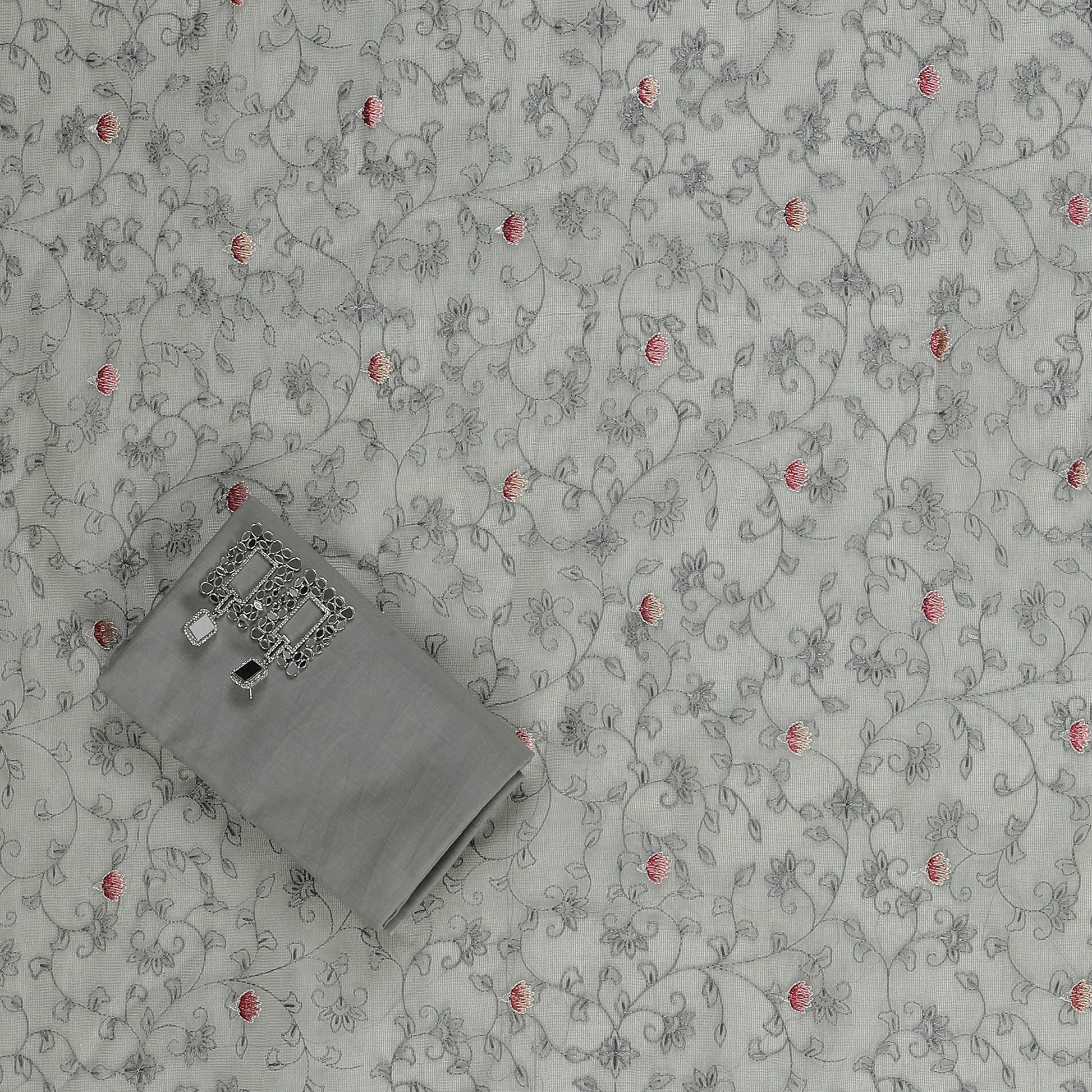 Indulge in the ultimate style and luxury with the Javer Supernet Floral Embroidery Unstitched Suit Set. Crafted with the finest quality Supernet fabric, this suit set is adorned with intricate floral embroidery, making it a must-have for any fashion-forward woman.